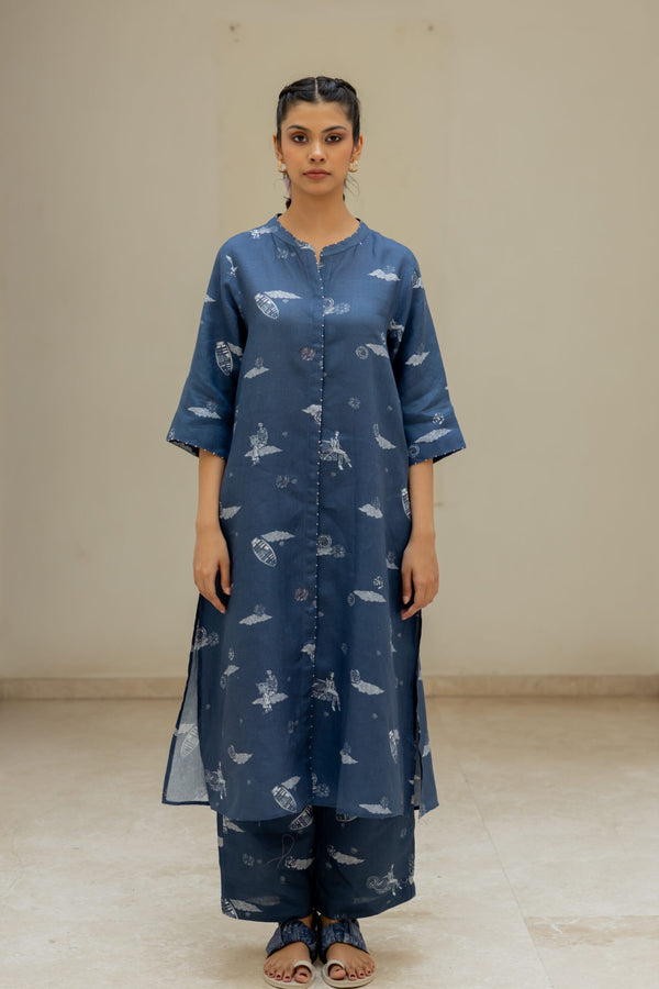 Linen Banaras Wild Flower Kai Dress- Pink And Green