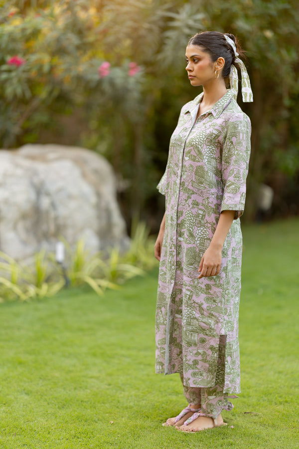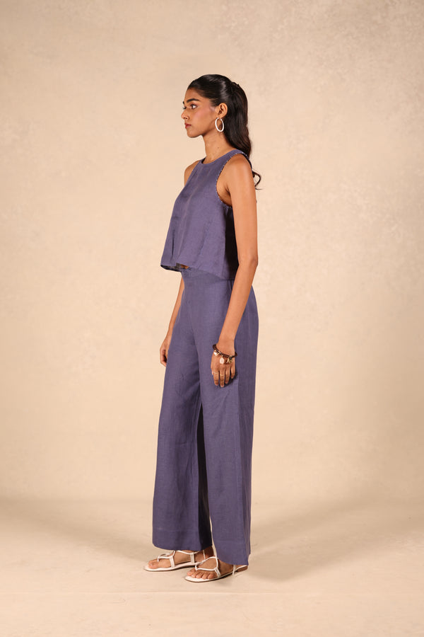 Linen Banaras Bloom Linen Kurta - Blue Floral