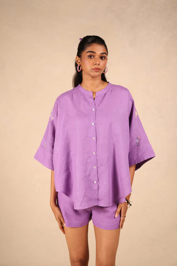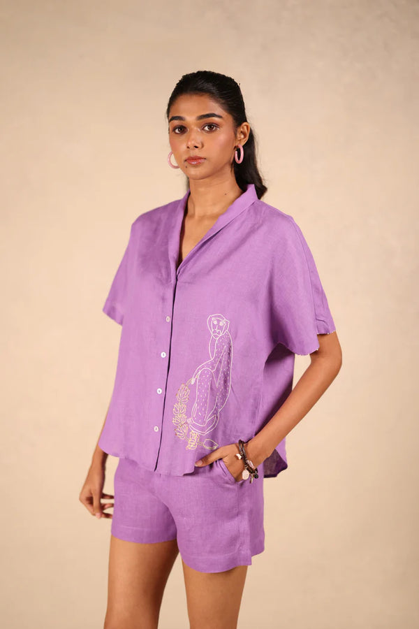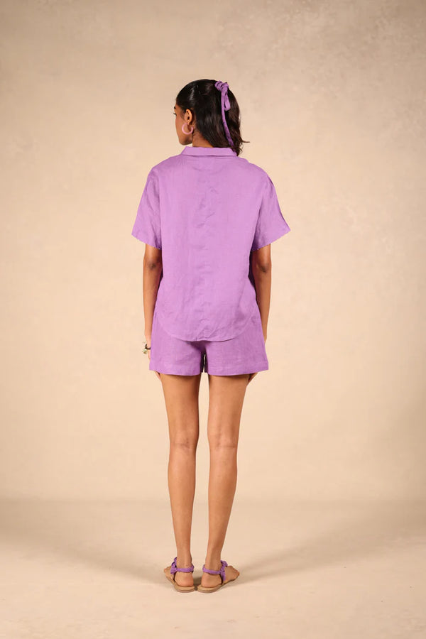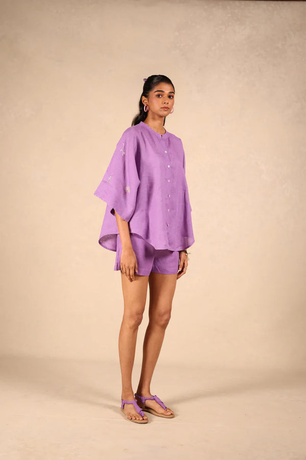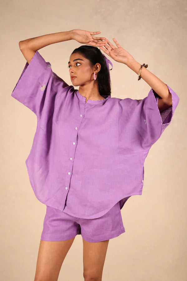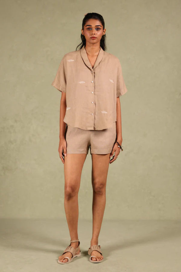 Linen Coord set - Shawl Collar Shirt With Shorts