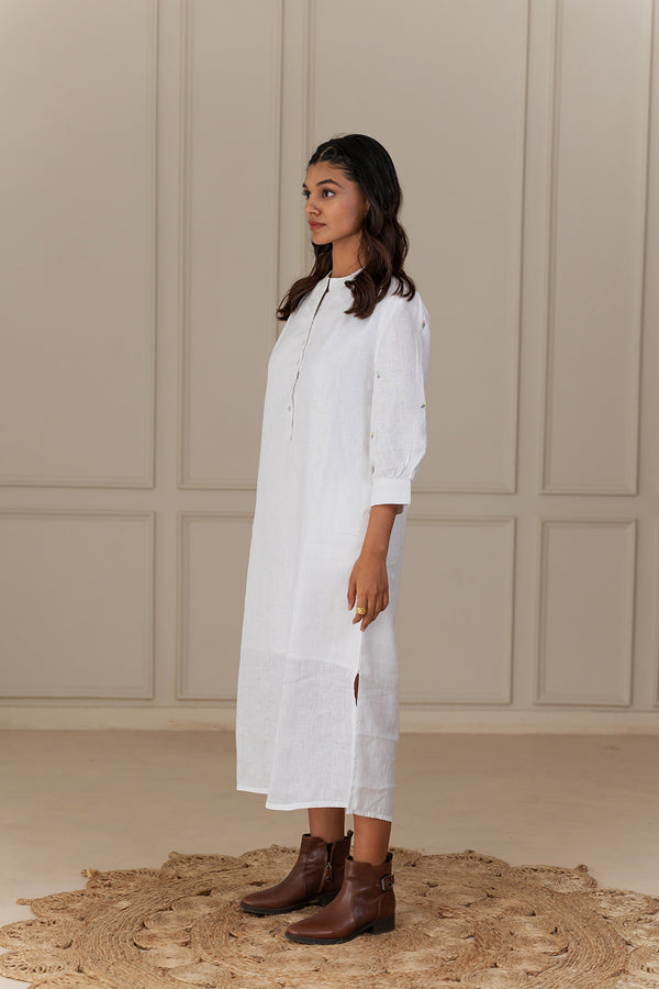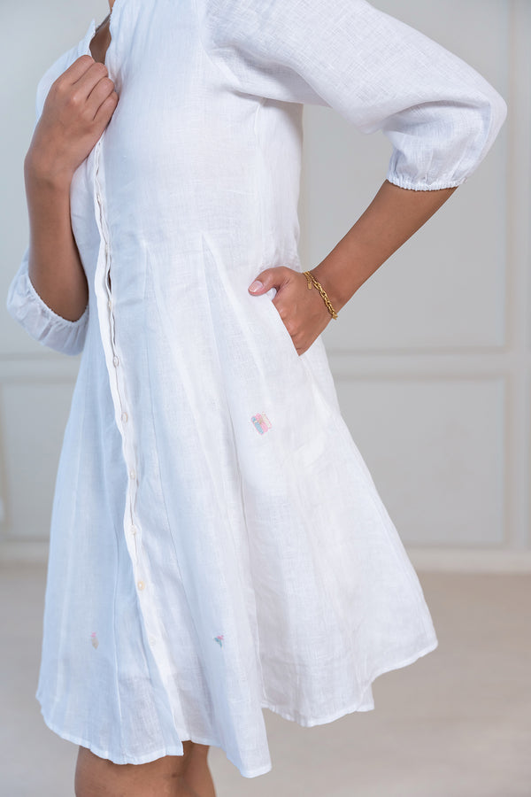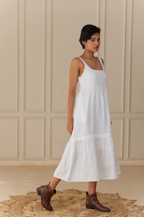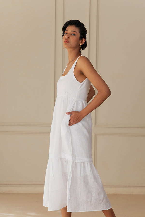 DAWN LINEN DRESS - White