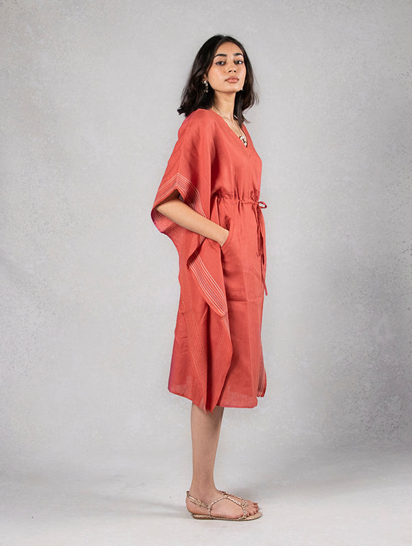Linen Emily Kaftan Dress - Rust