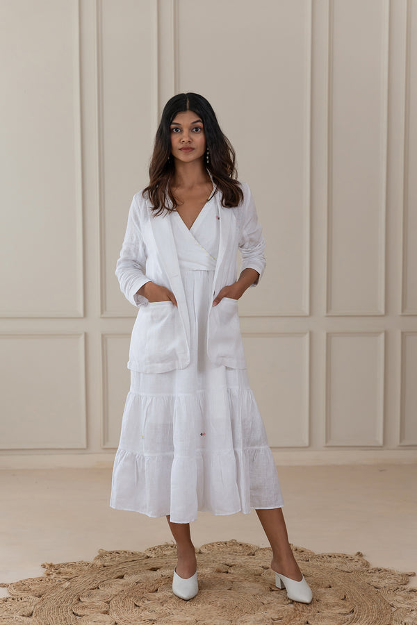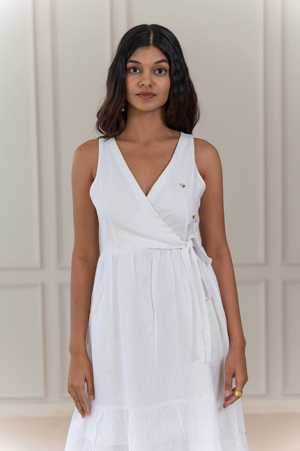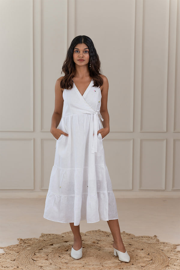 Grace Linen Wrap Dress - White