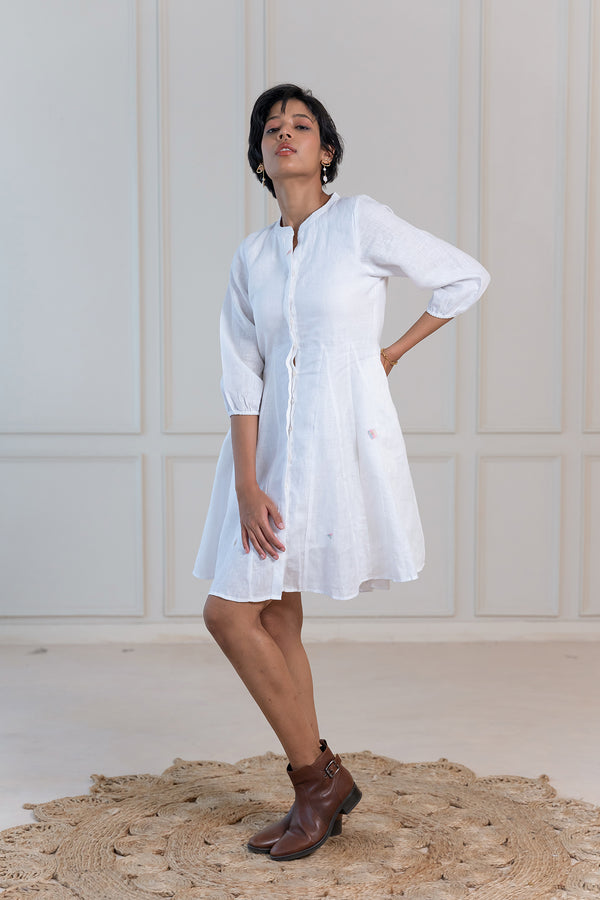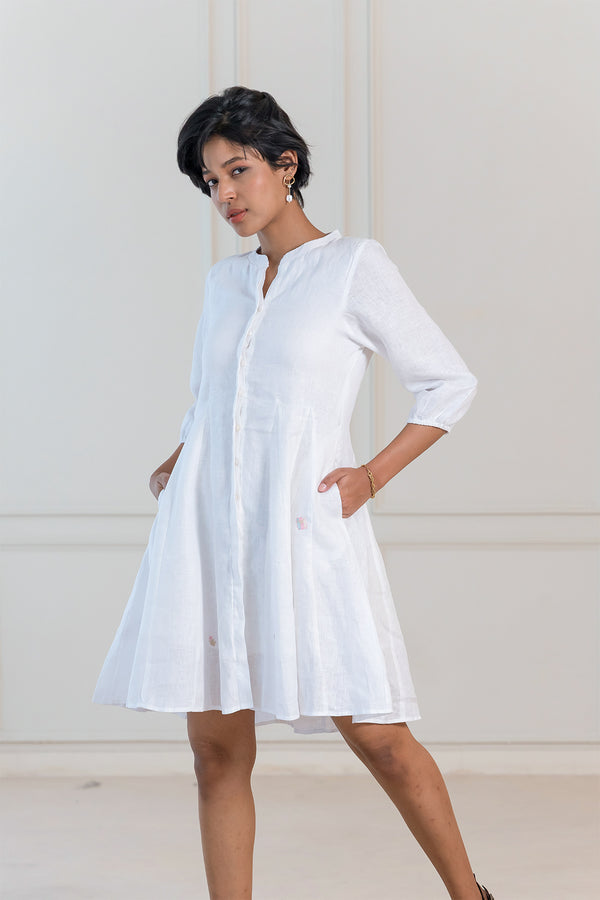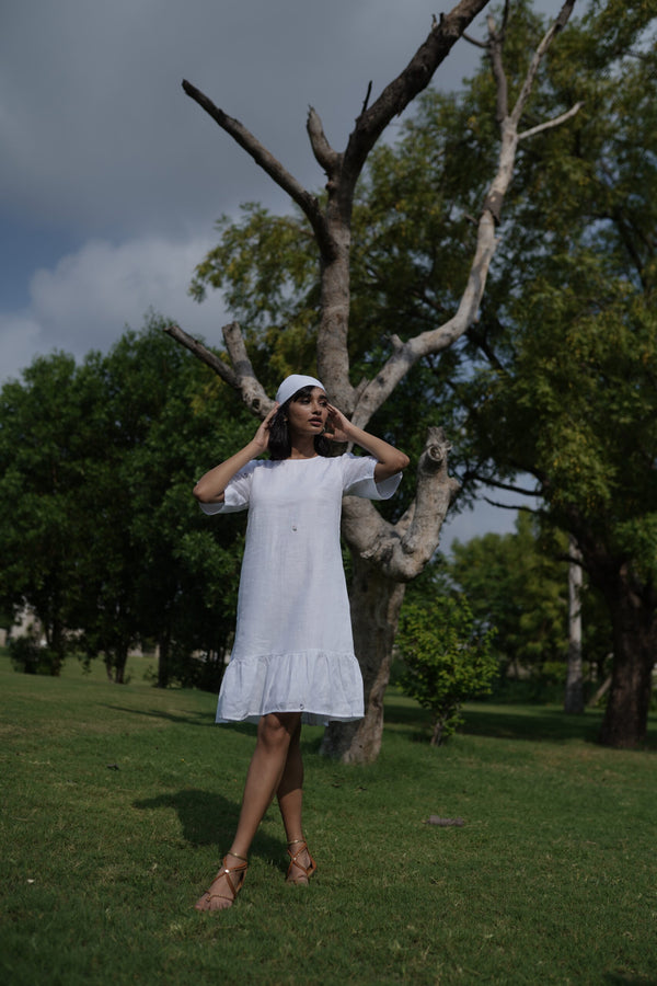 MAPLE LINEN SHORT DRESS - White