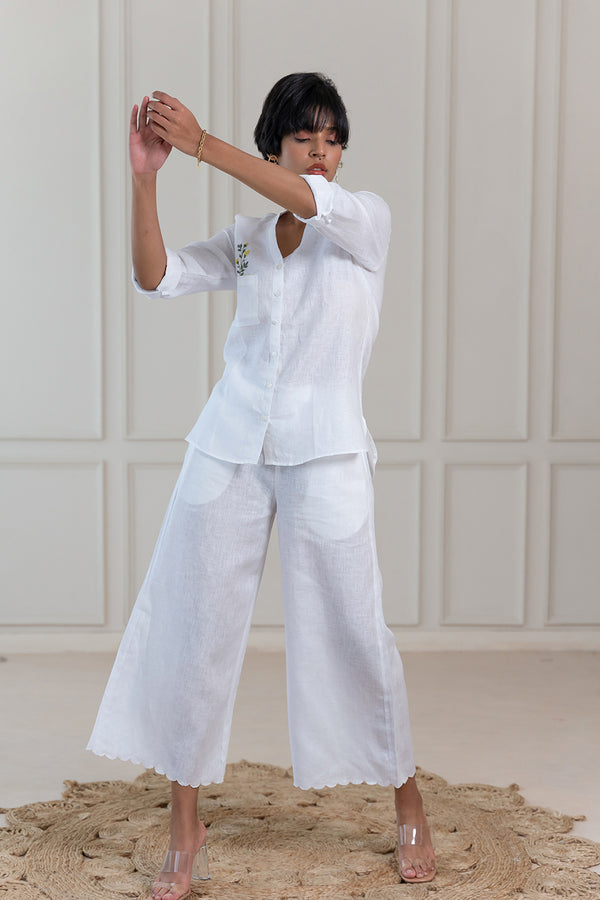 MARTHA LINEN CUTWORK PANTS - White