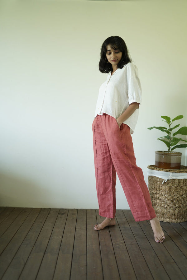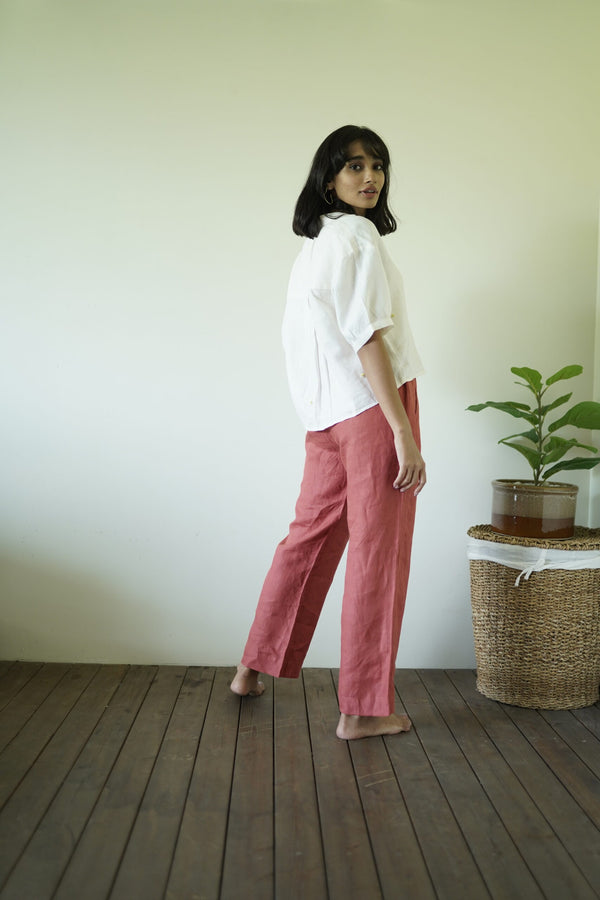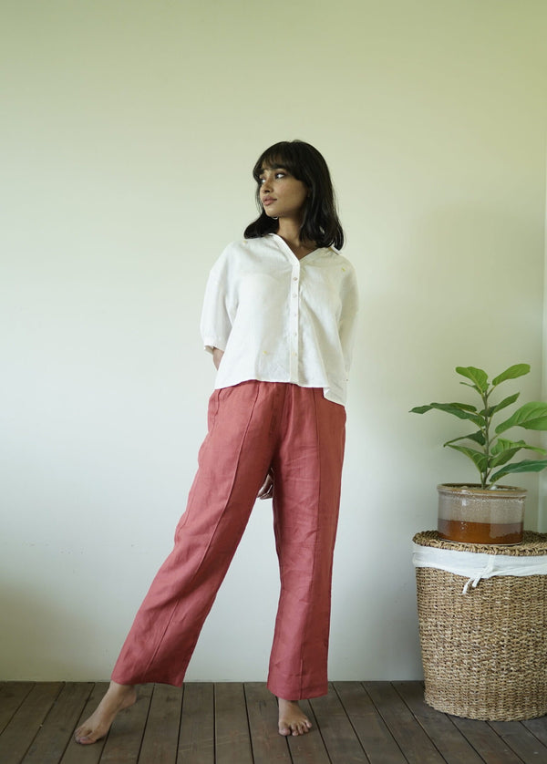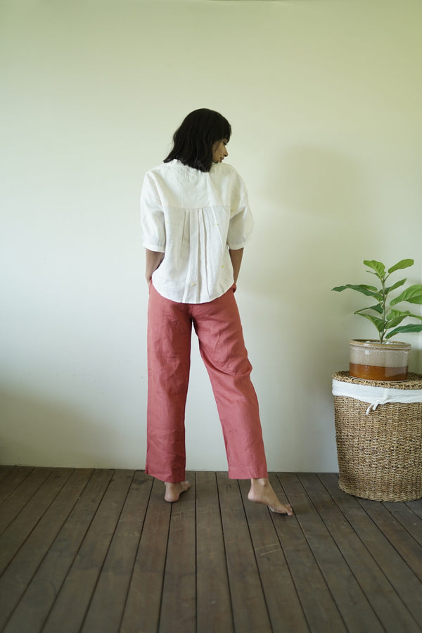 Alan Linen Tucks Pants- Rust