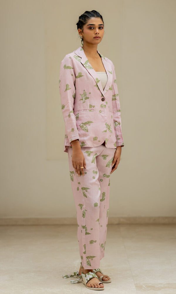 Linen Banaras Stories Pant- Pink and Green