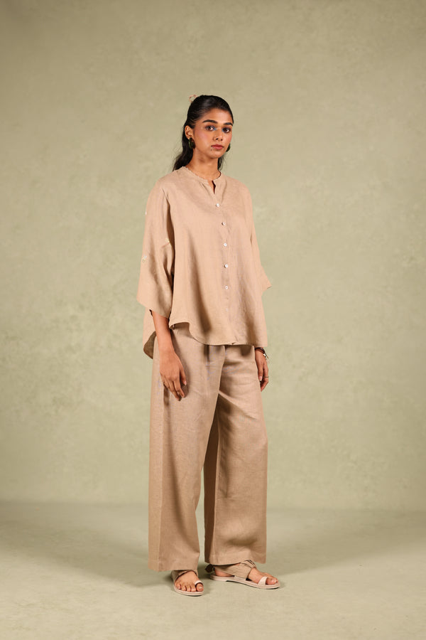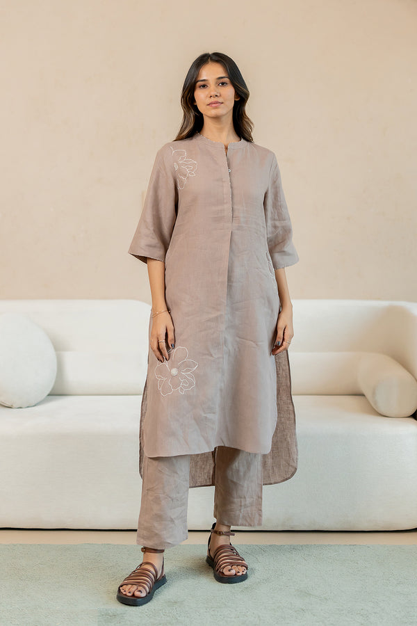 Linen Lagoon Up down kurta and Pant Set- Mud