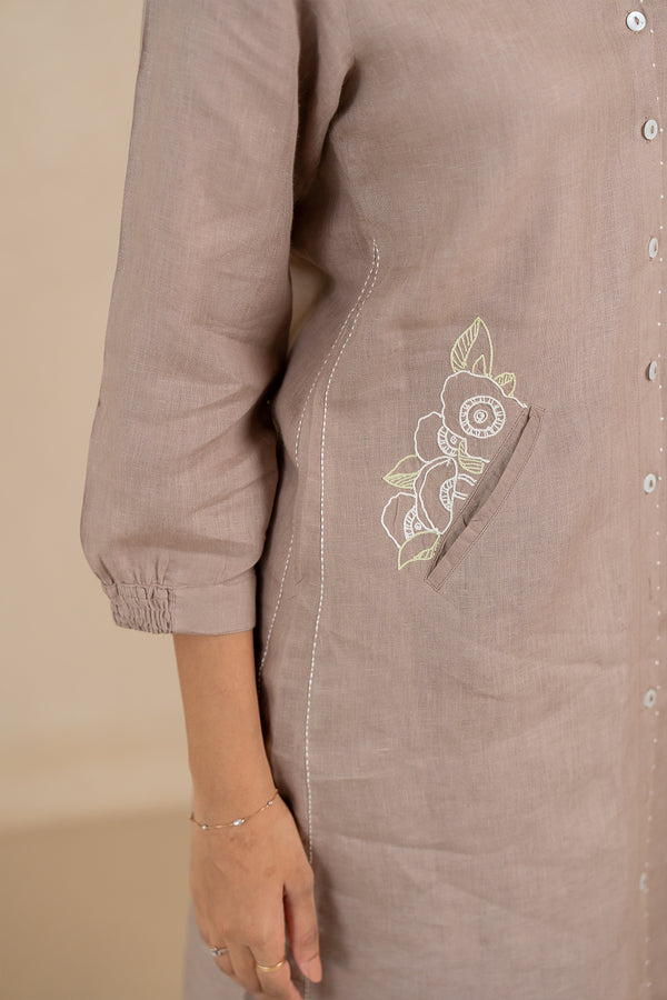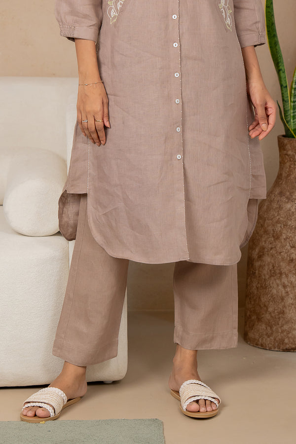 Olivia Linen Kurta and Pants Set With Pockets- Mud