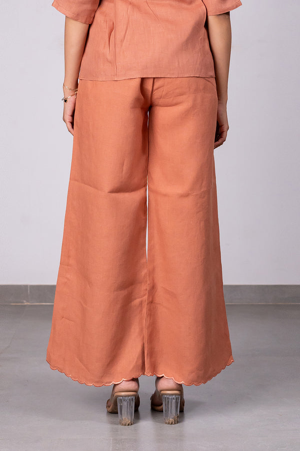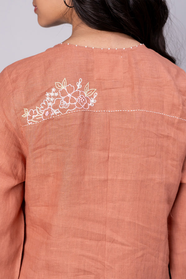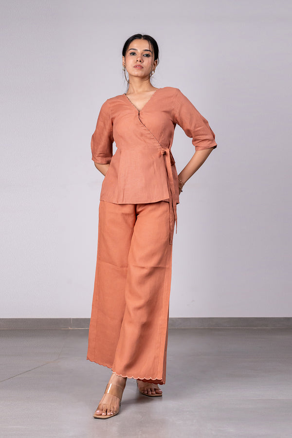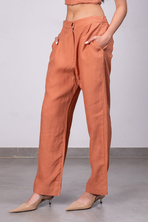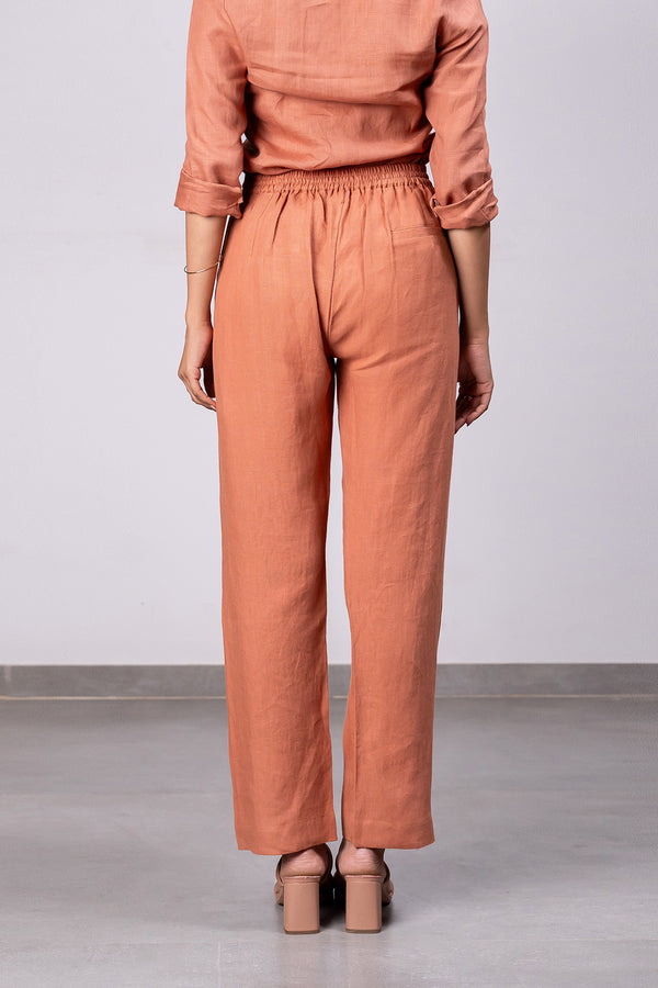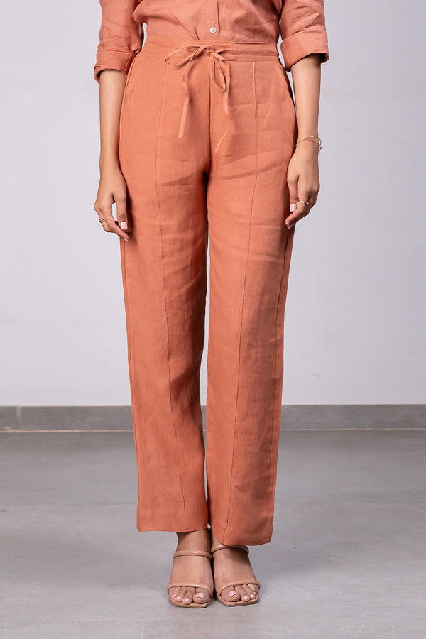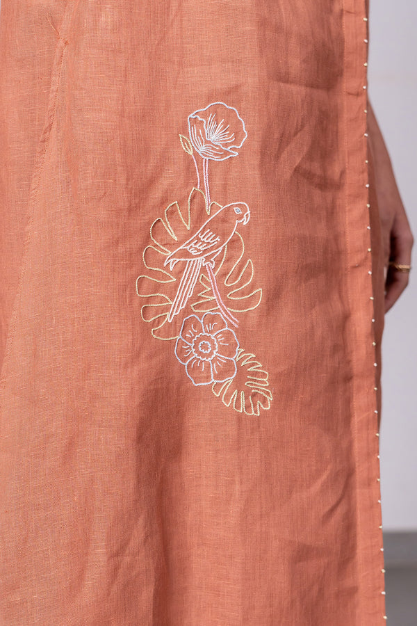 Demi Linen Buttoned Kurta- Pant set with pockets - Sand Brown