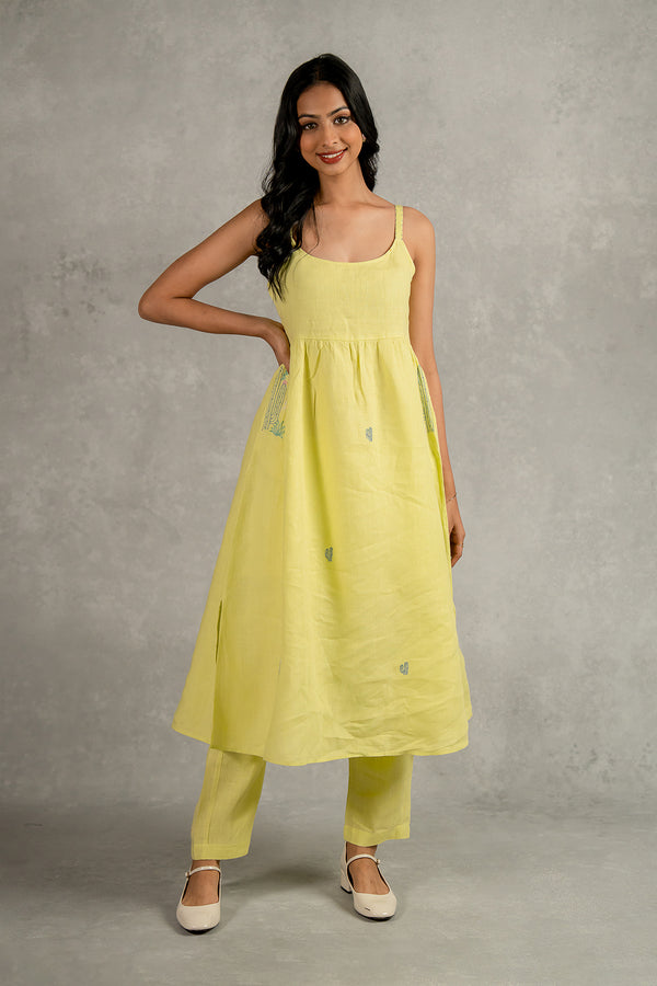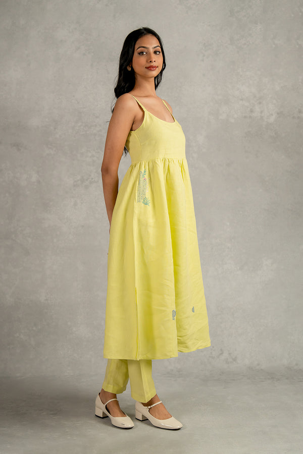 Alicia Strap Panel Dress and Pants set with pockets - Lime