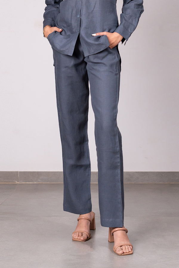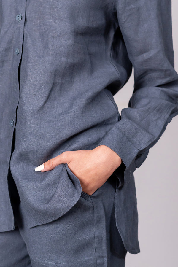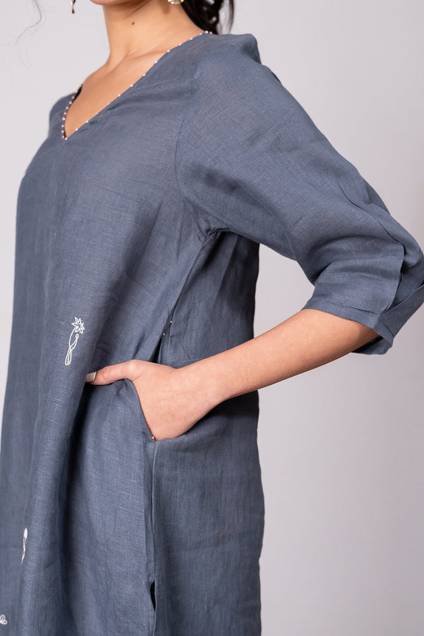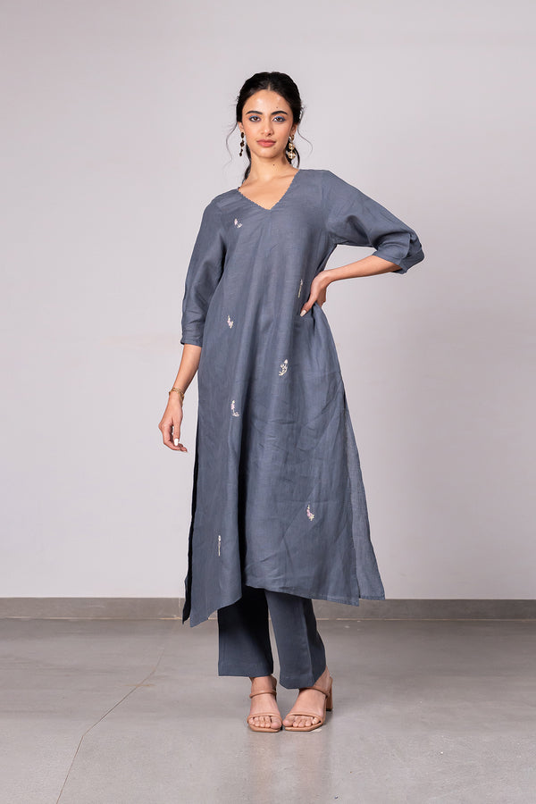 Sophia Linen Kurta-Pants Set with pocket - Charcoal Grey