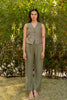 Barbara Linen Vest with welt pockets - Olive Green