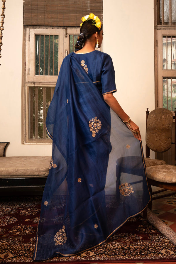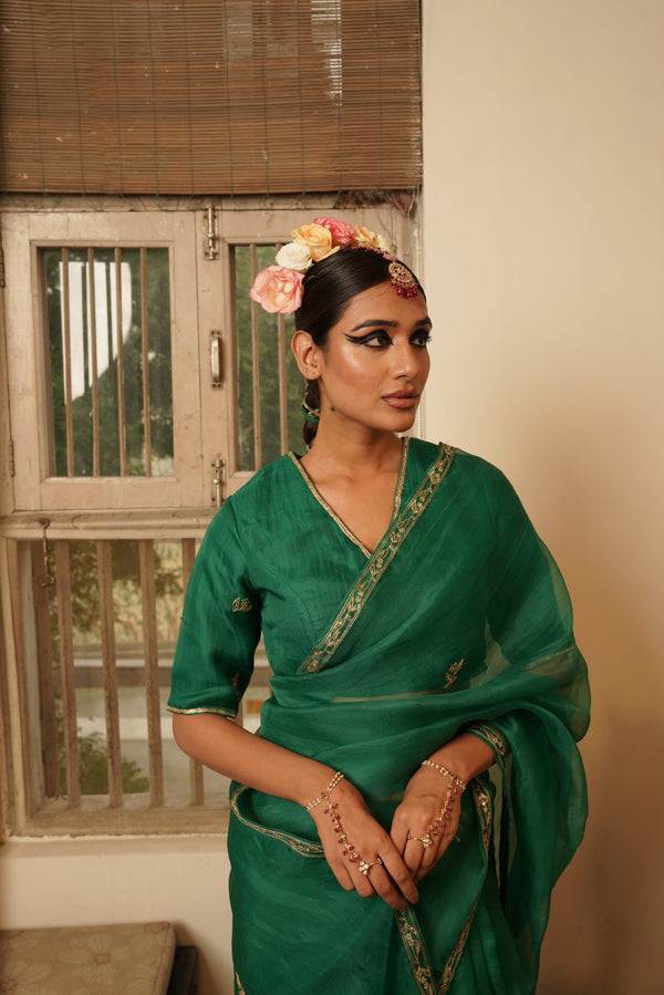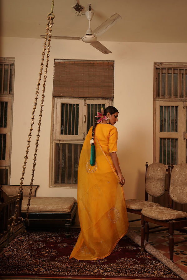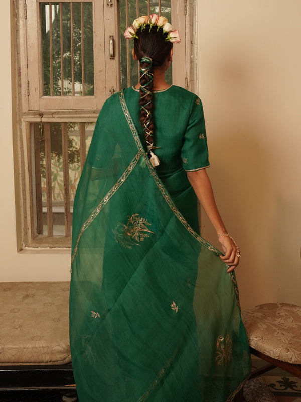 Basant lotus Organza Dupatta - Sindhoori Laal