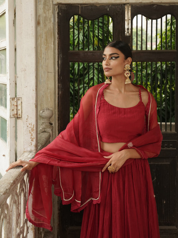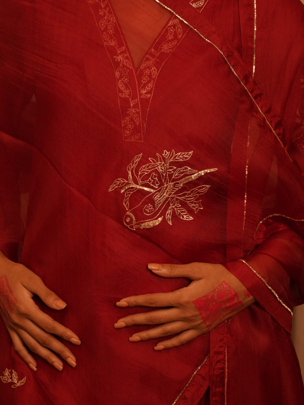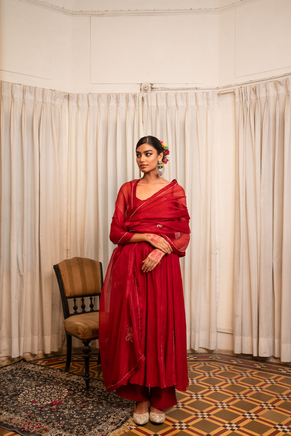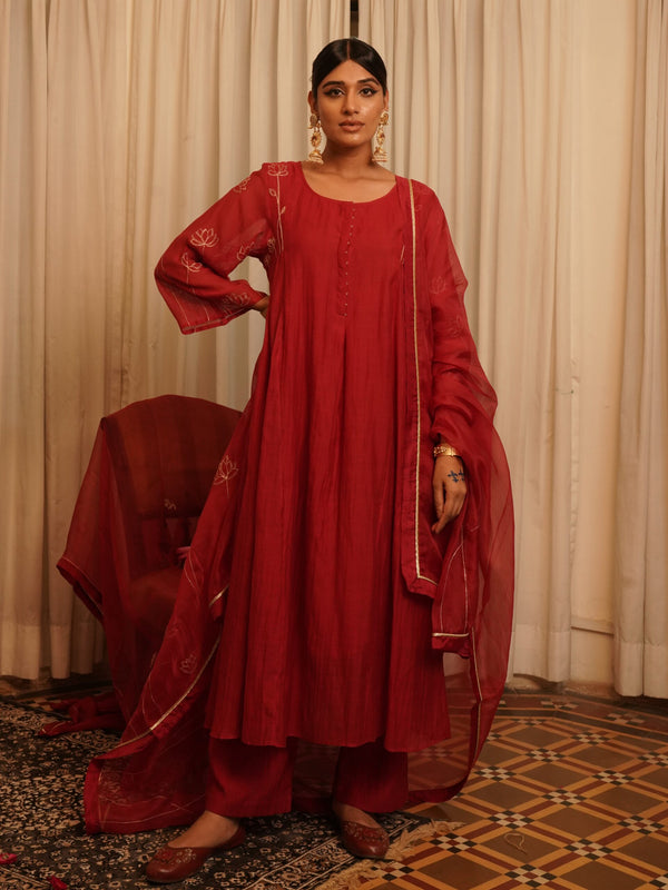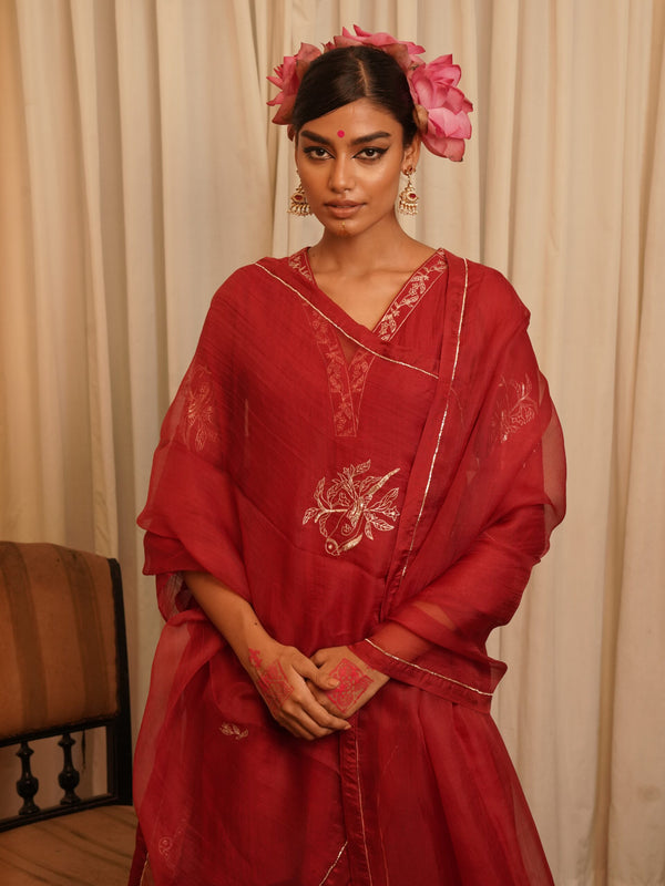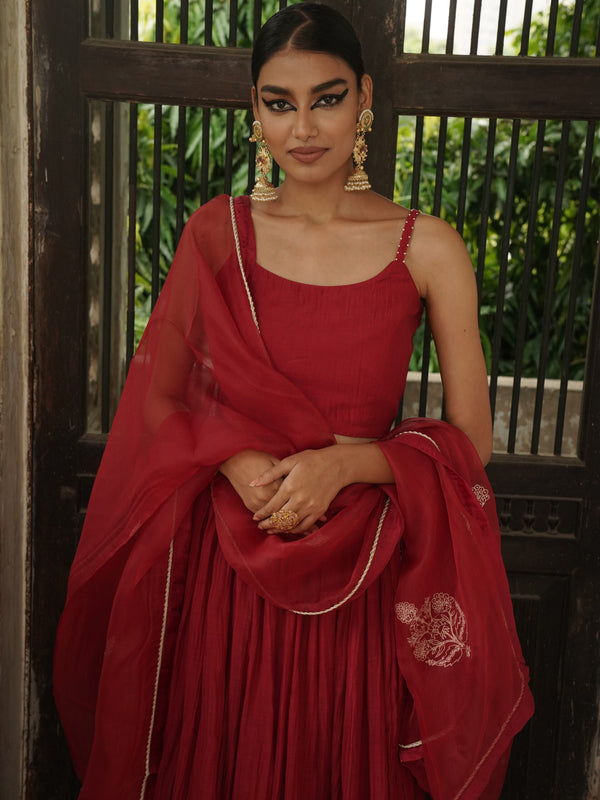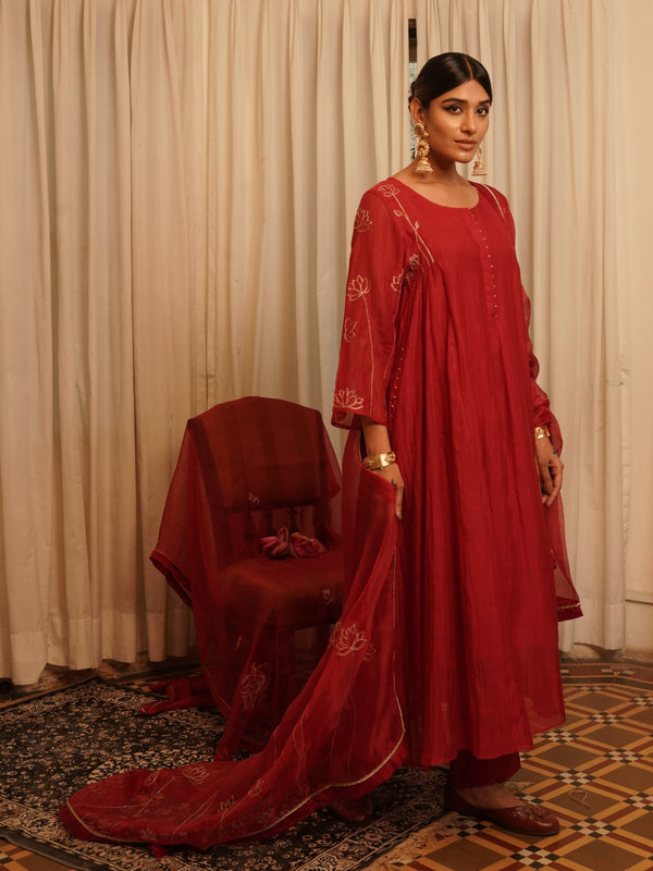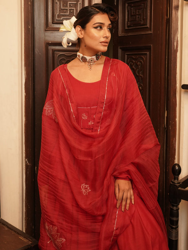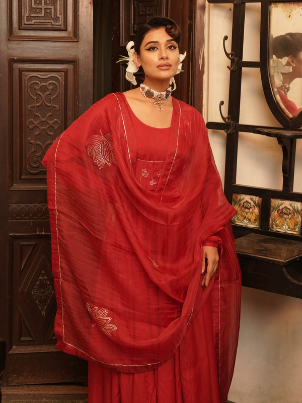 Basant lotus Organza Dupatta - Sindhoori Laal
