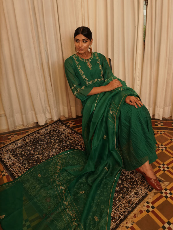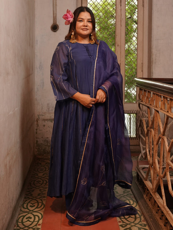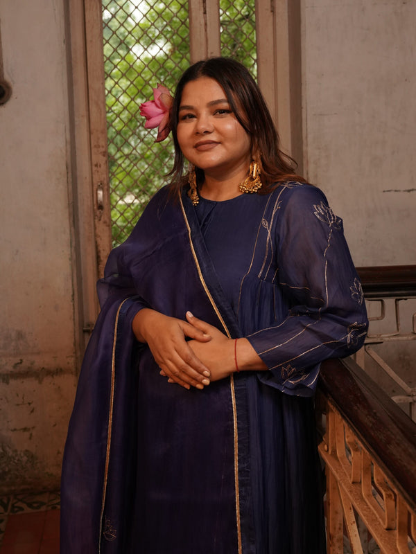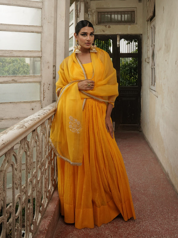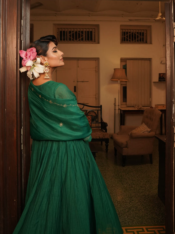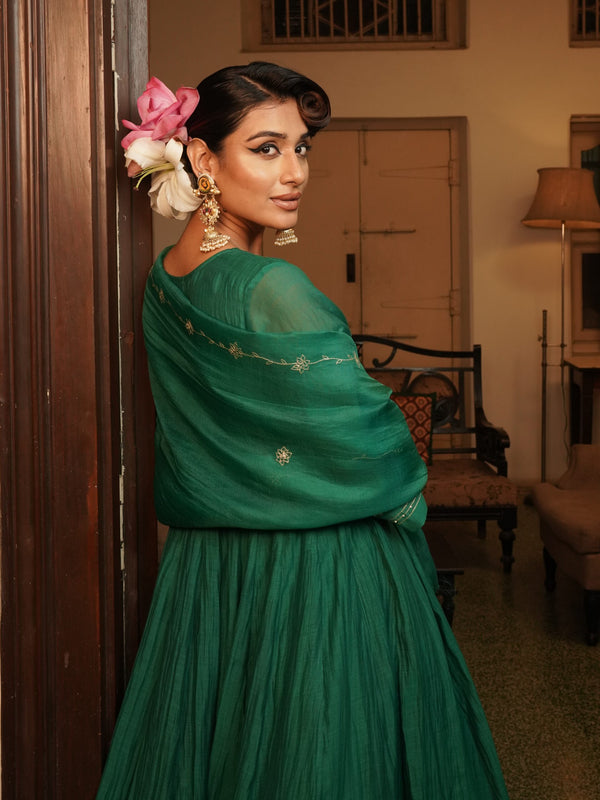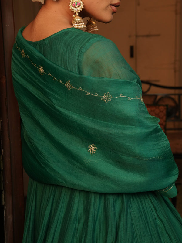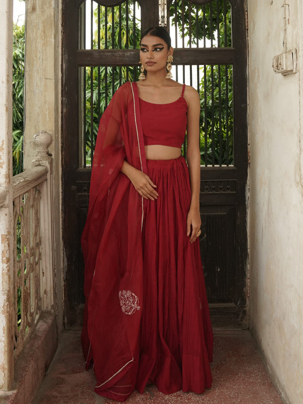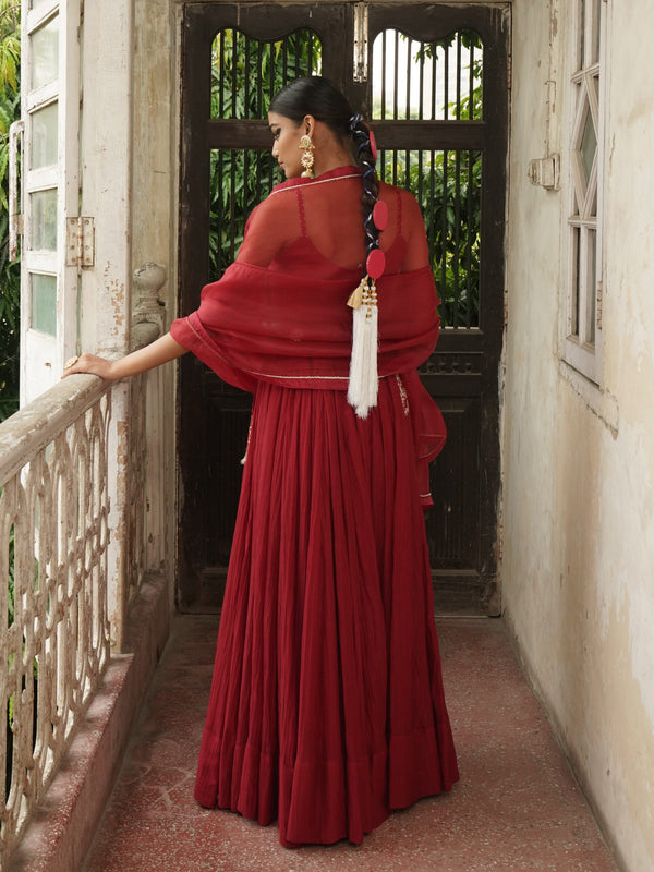 Basant lotus Organza Dupatta - Sindhoori Laal