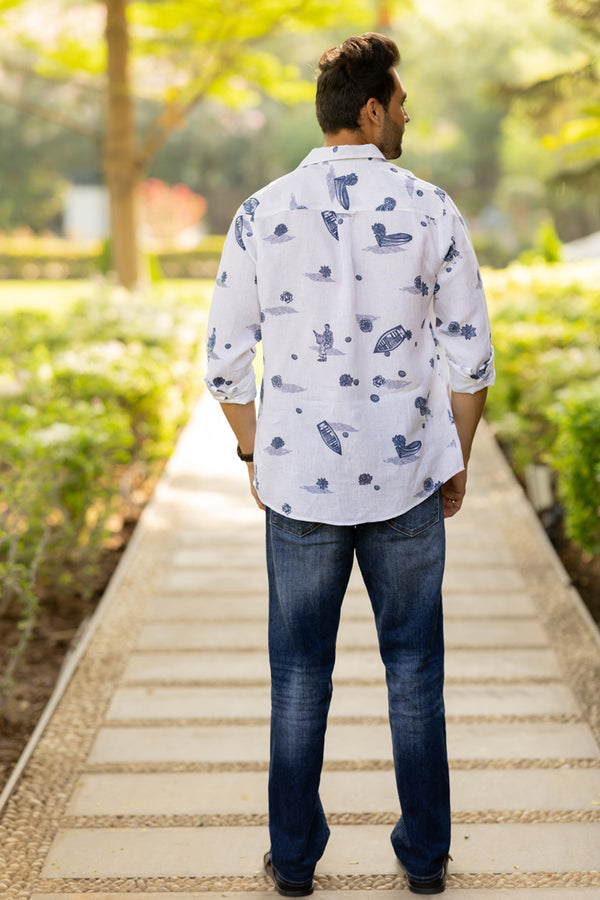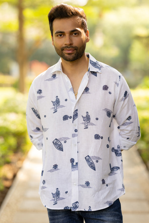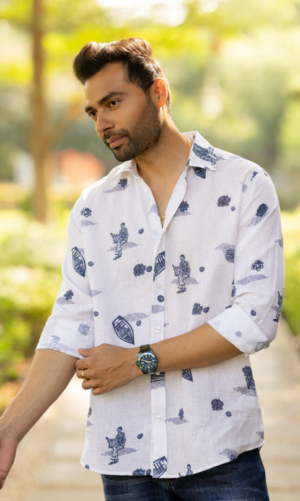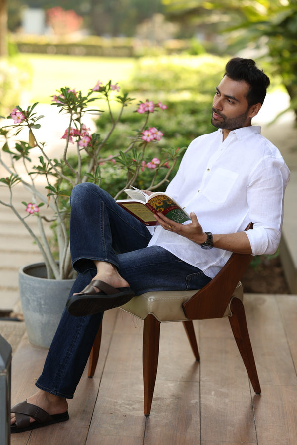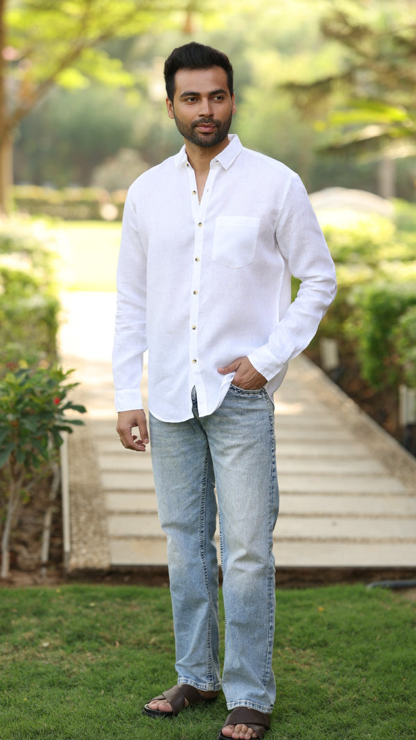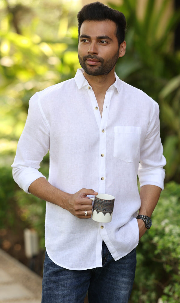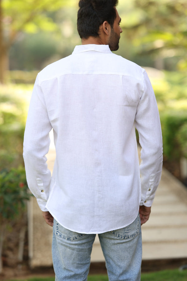 Linen Men Classic Collar Shirt - White Badal Naav