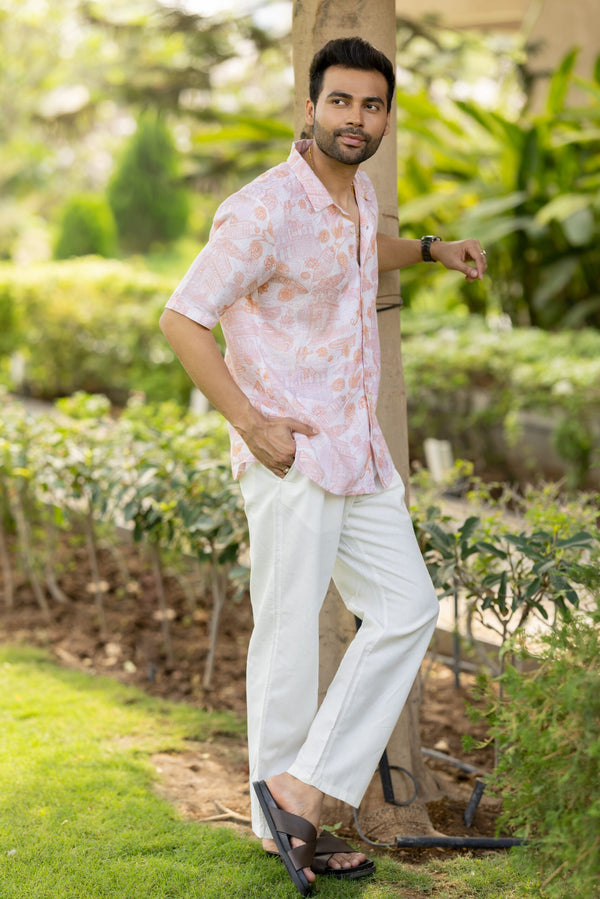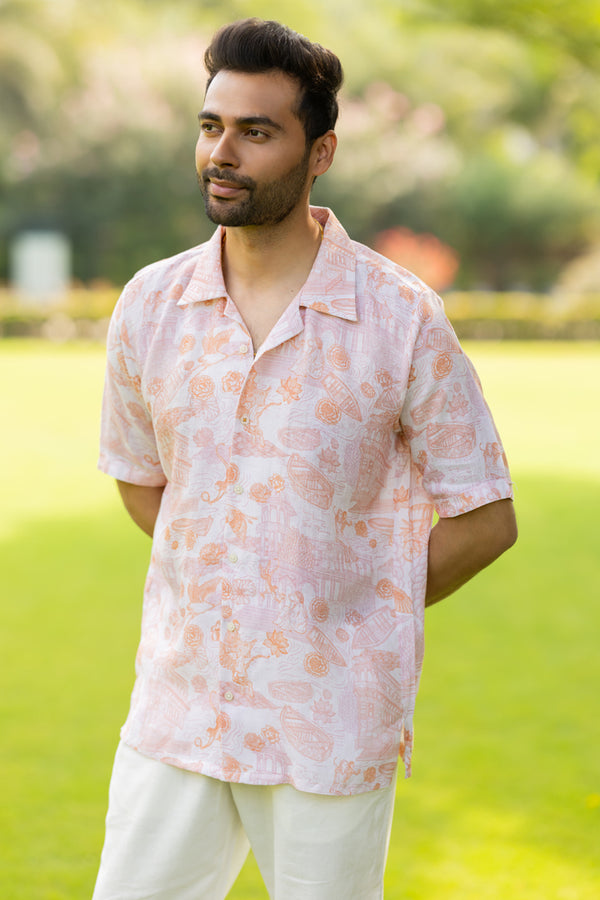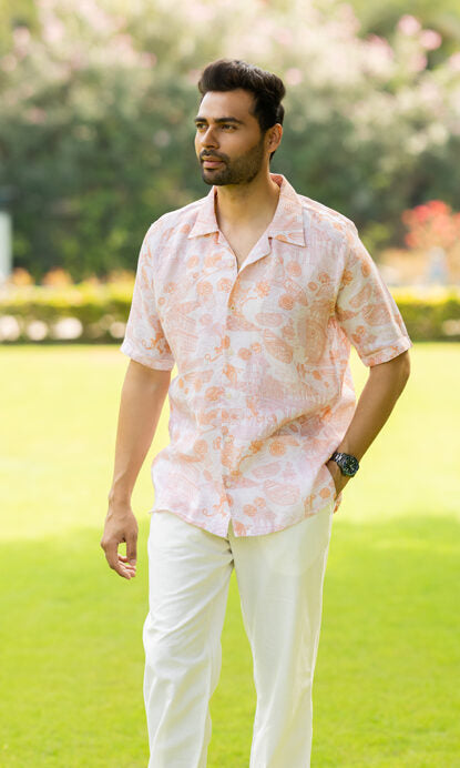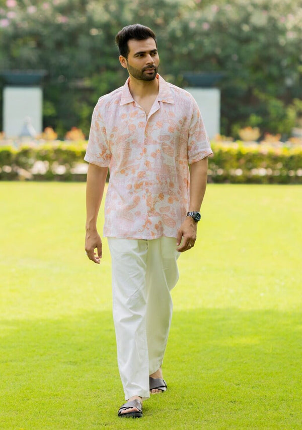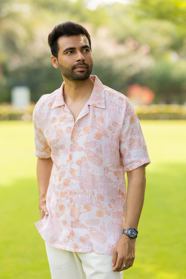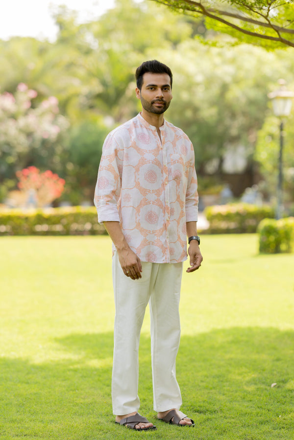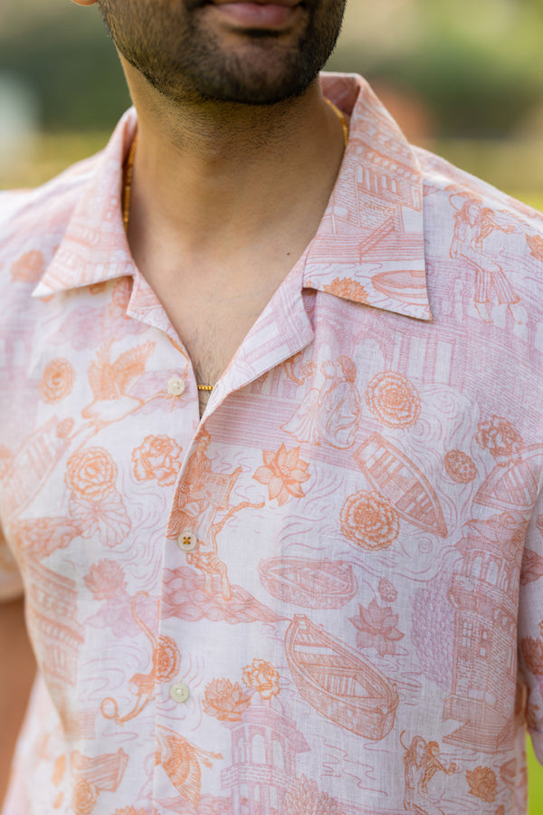 Linen Mens Shirt- Orange Banaras