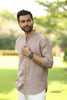 Linen Men Shawl Collar Shirt - Oatmeal