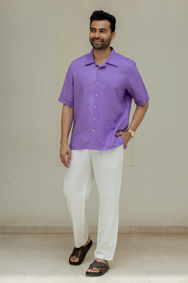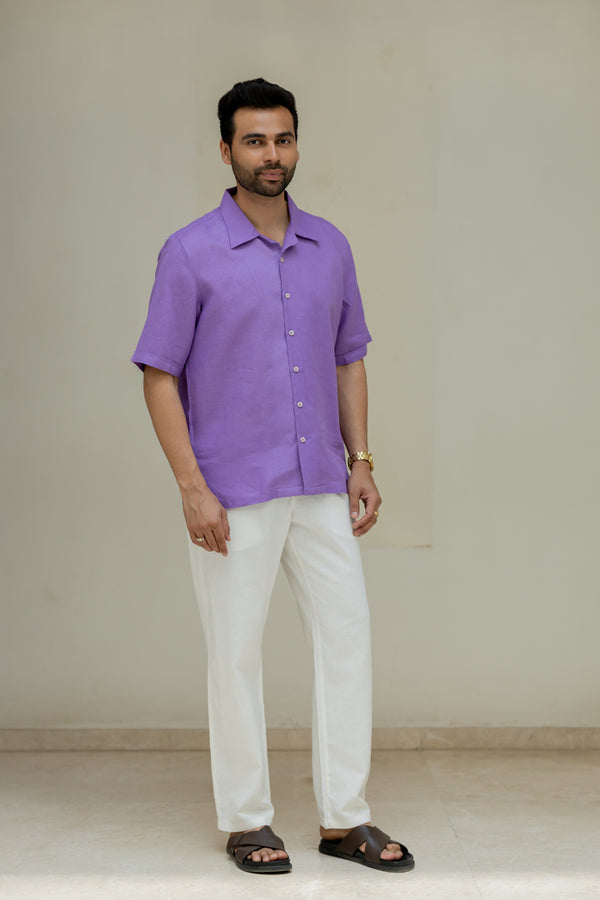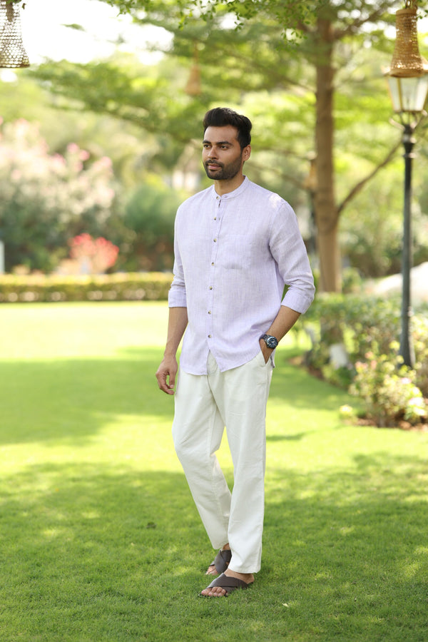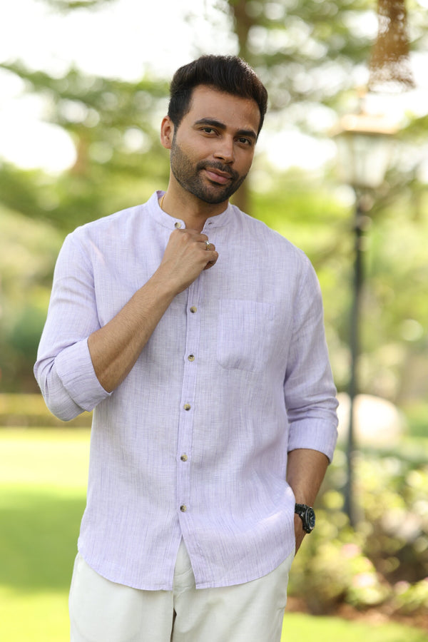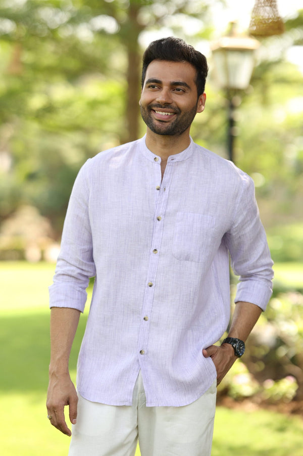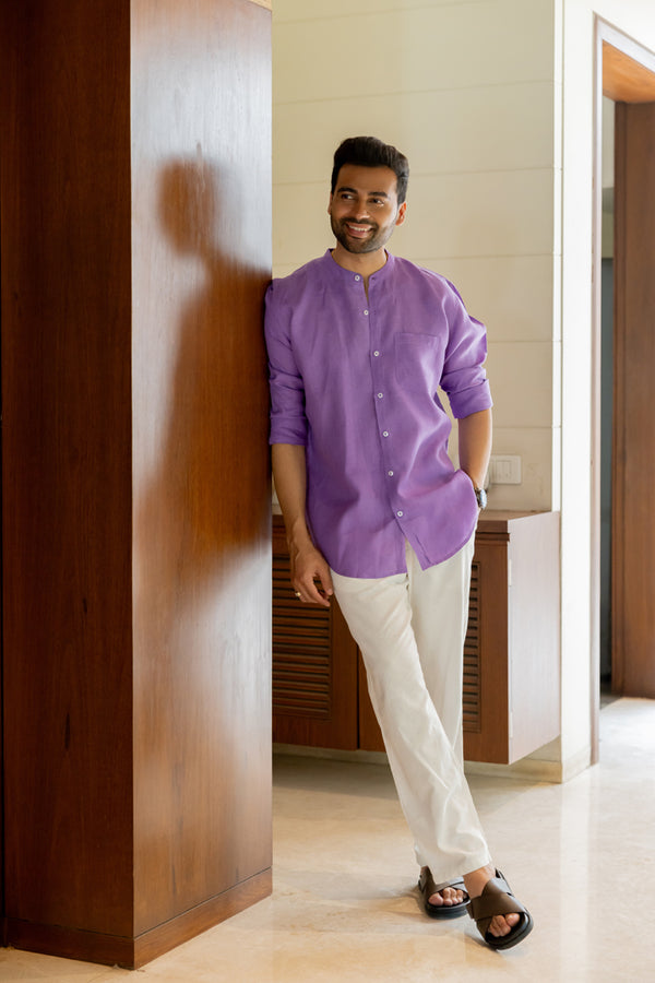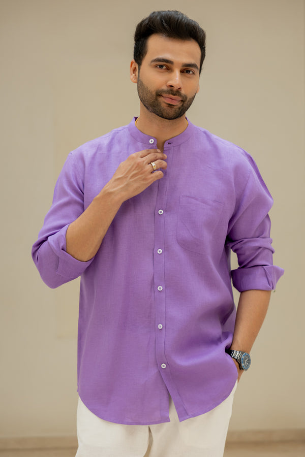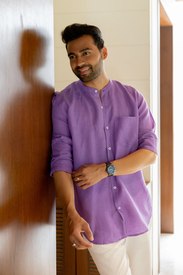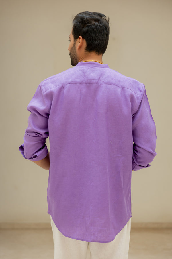 Linen Mandarin Collar Shirt - Purple