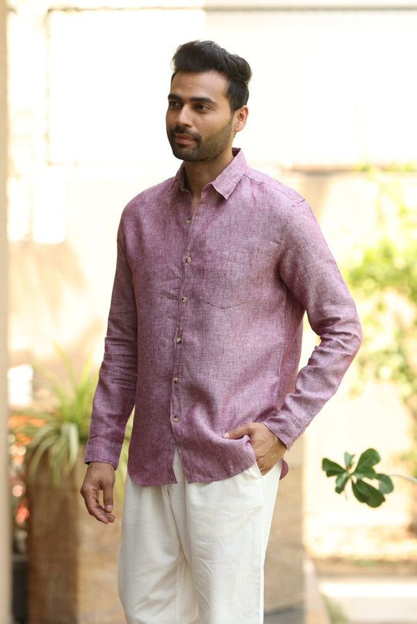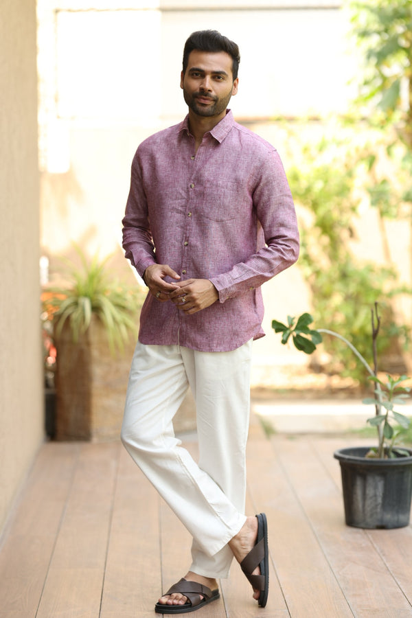 Linen Men Classic Collar Shirt - Wine