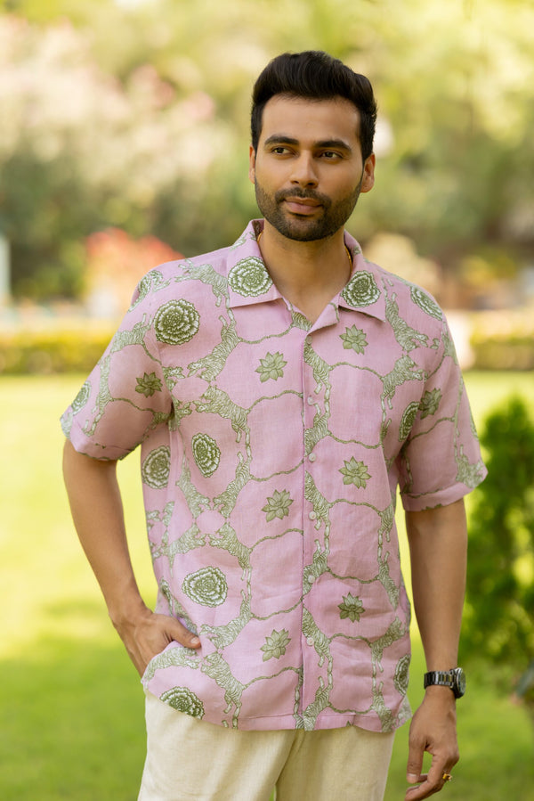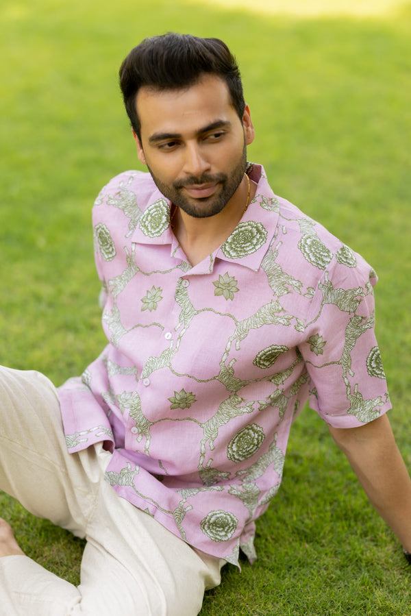 Linen Banaras Wild – Tiger And Floral Motif Shirt