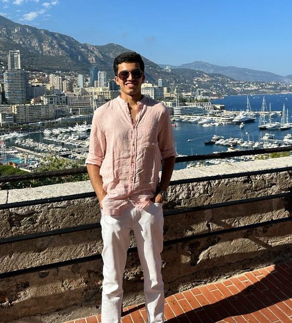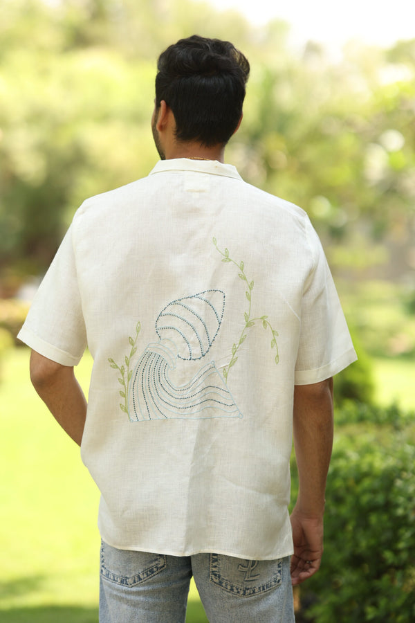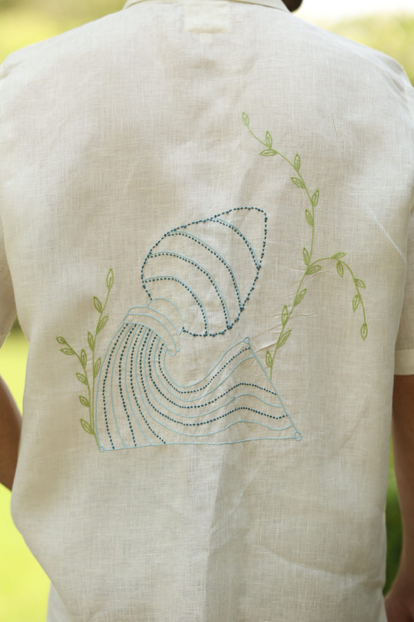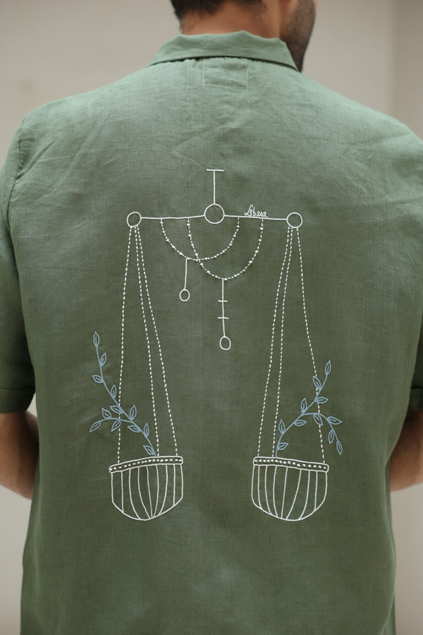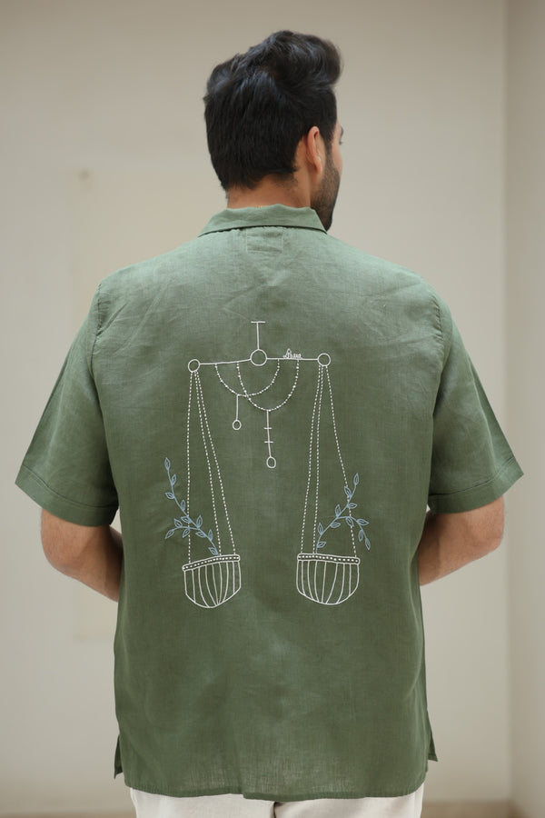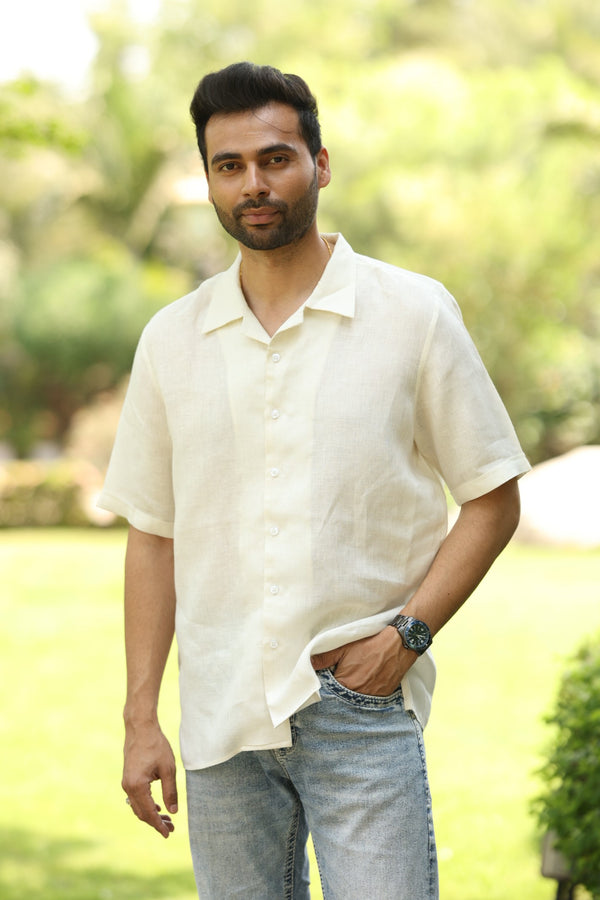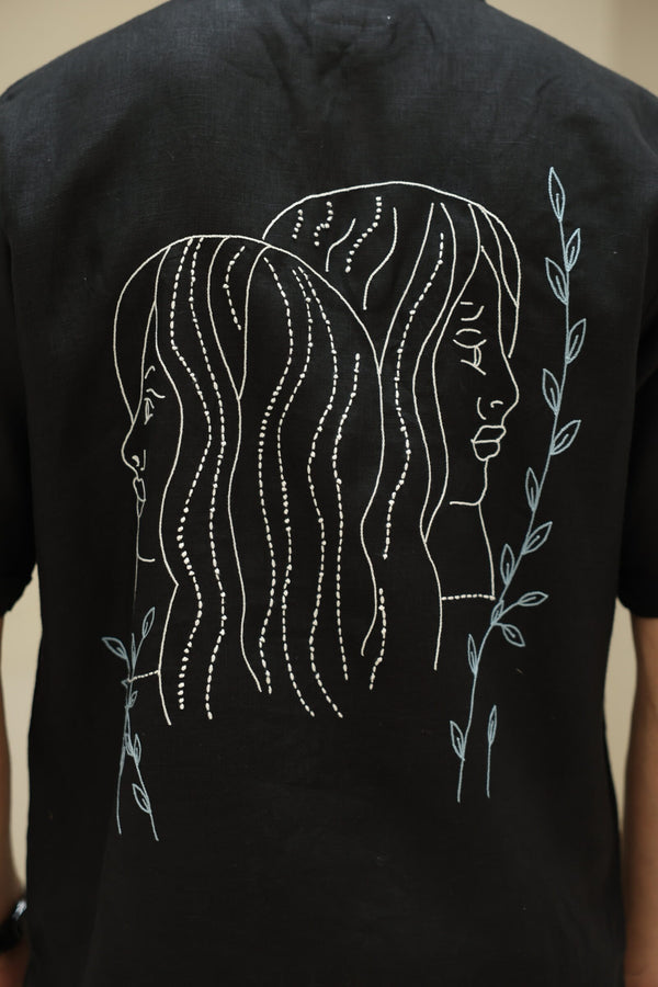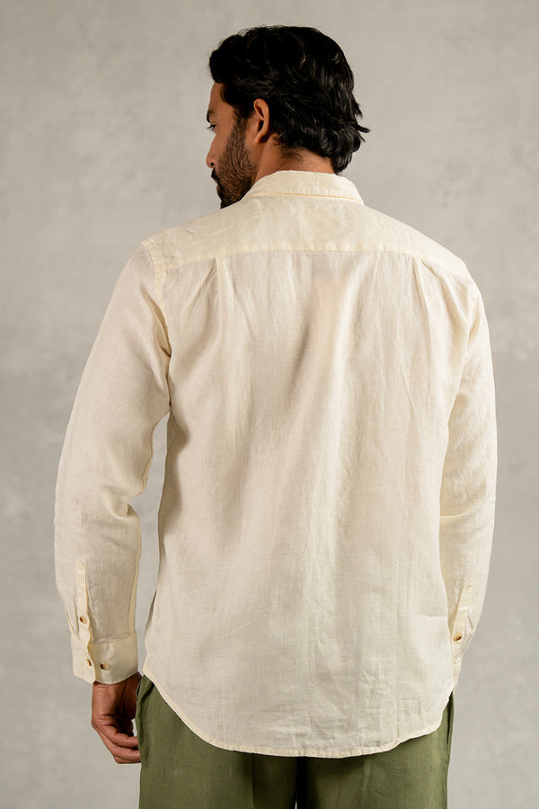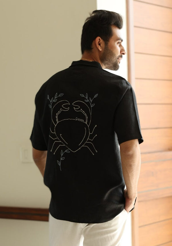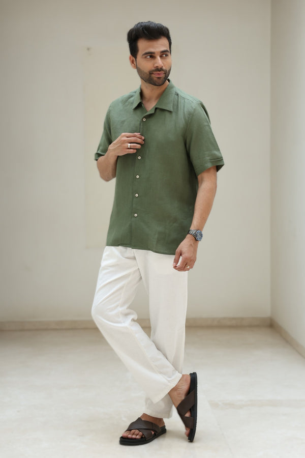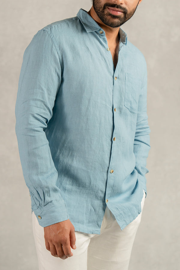 Linen Men Mandarin Collar Shirt - Charcoal Grey
