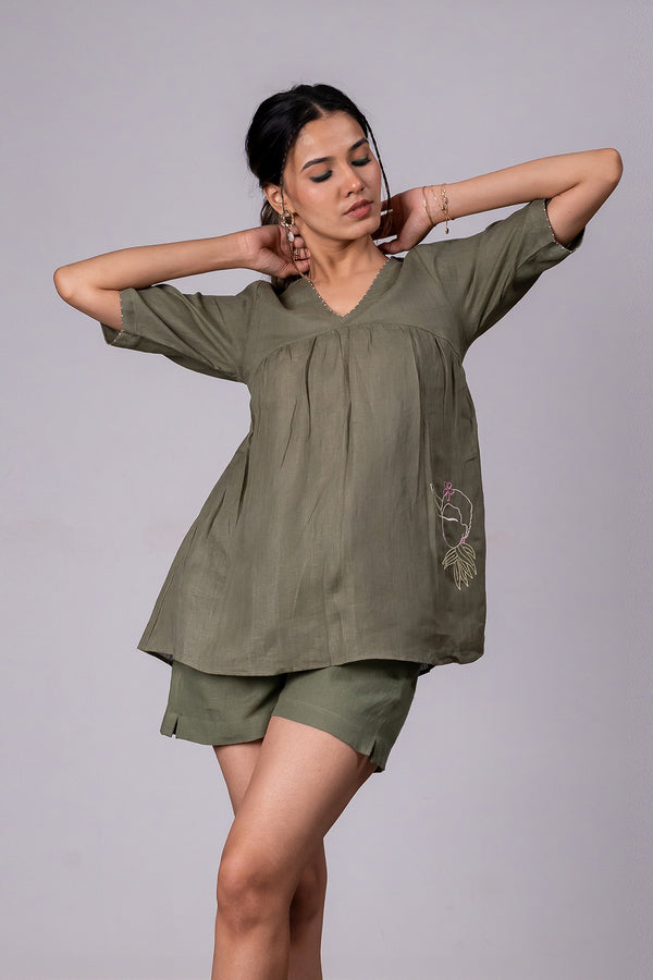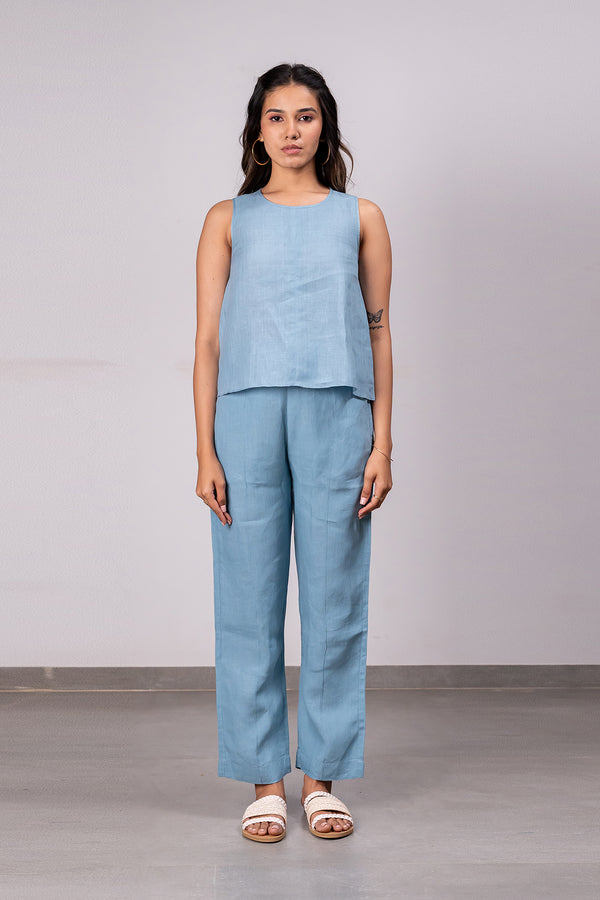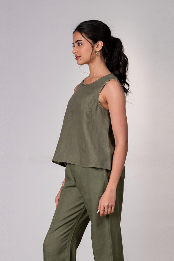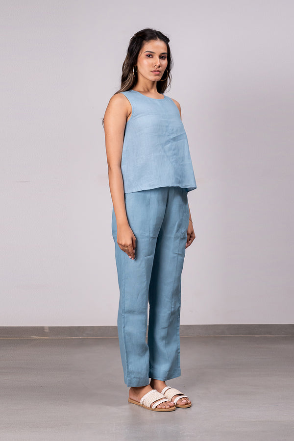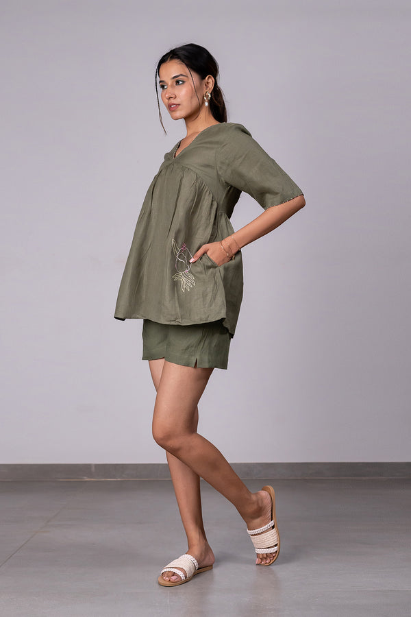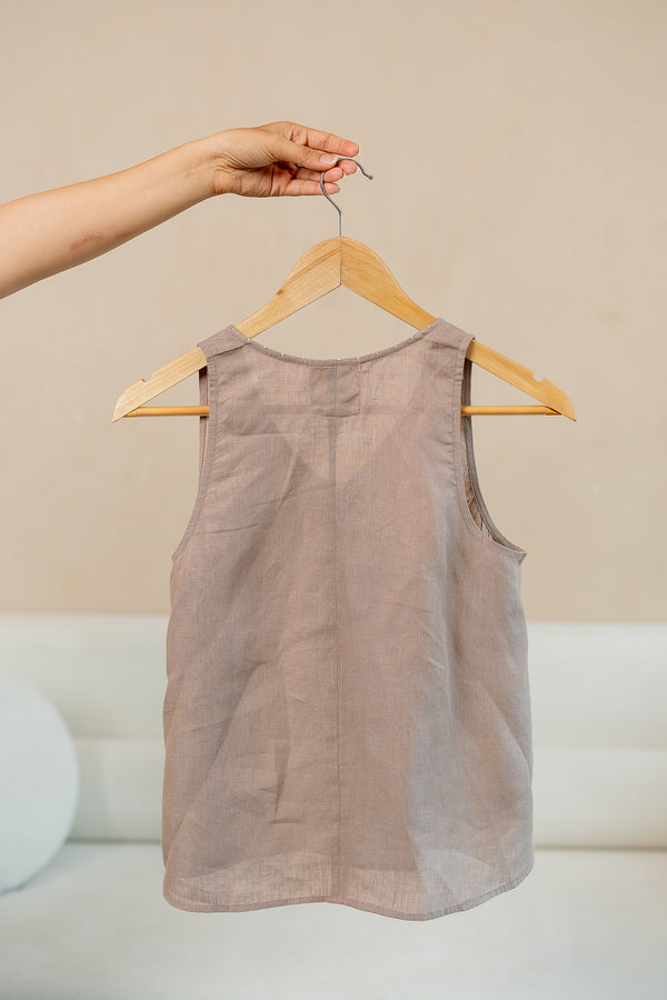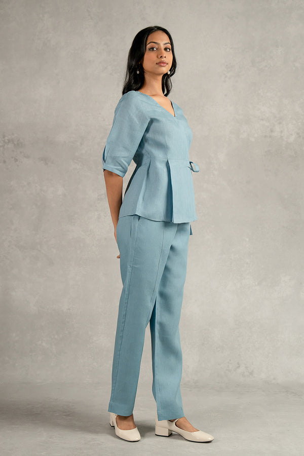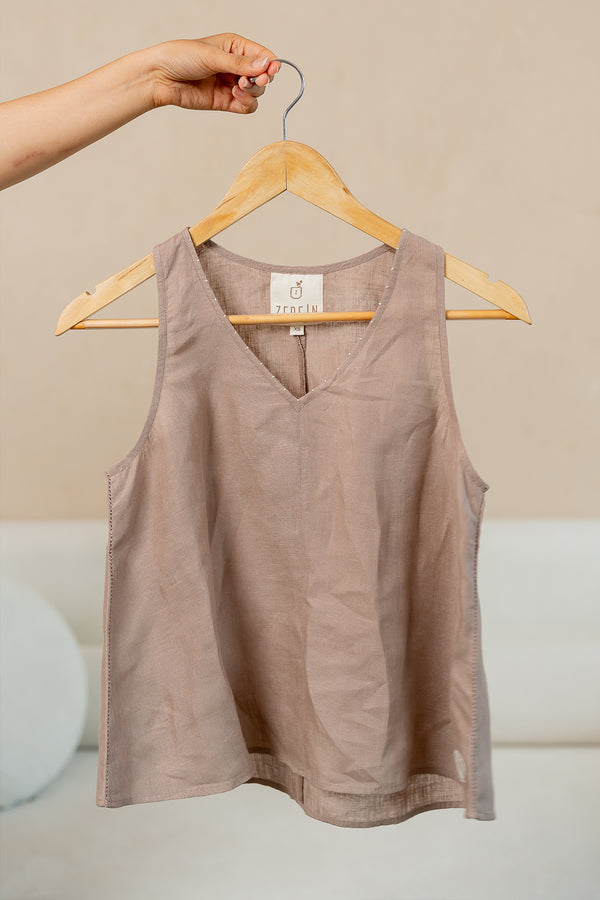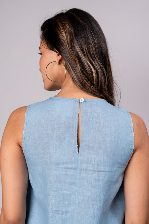 Adriene Linen Box Pleat Flare Top - Charcoal Grey