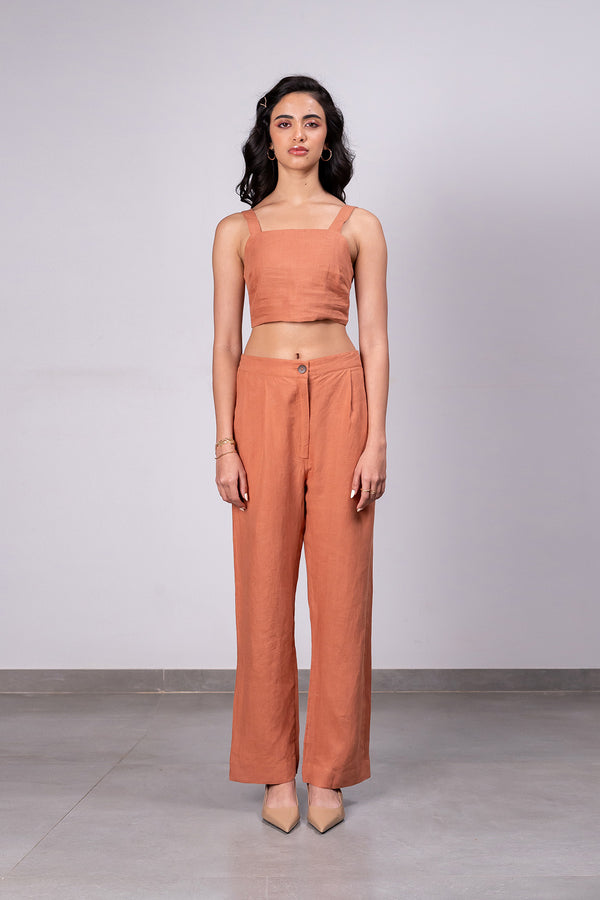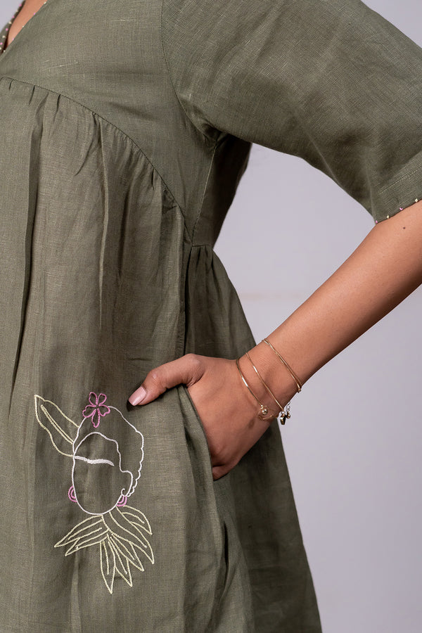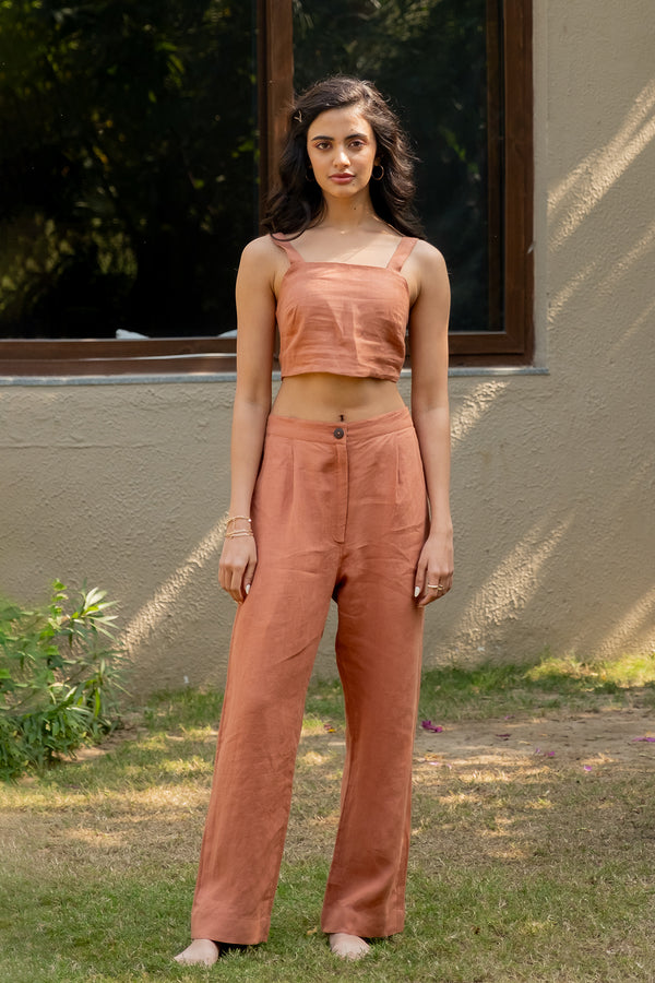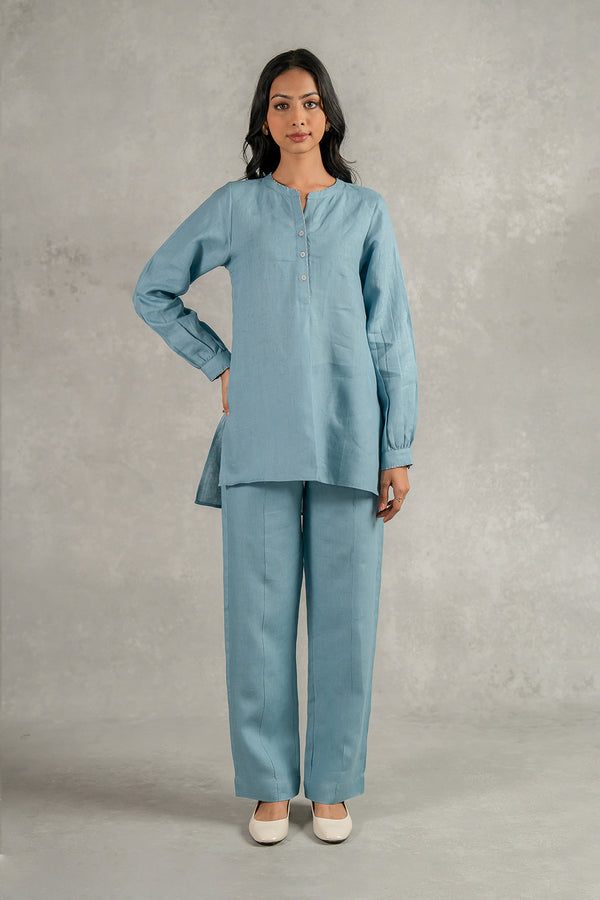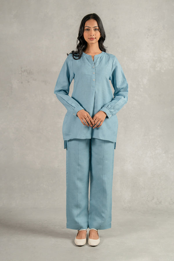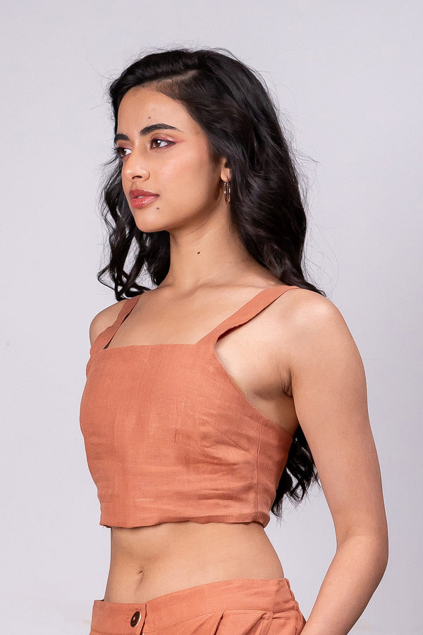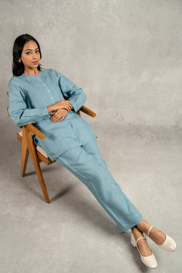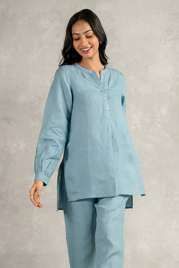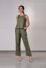 Adriene Linen Box Pleat Flare Top - Charcoal Grey