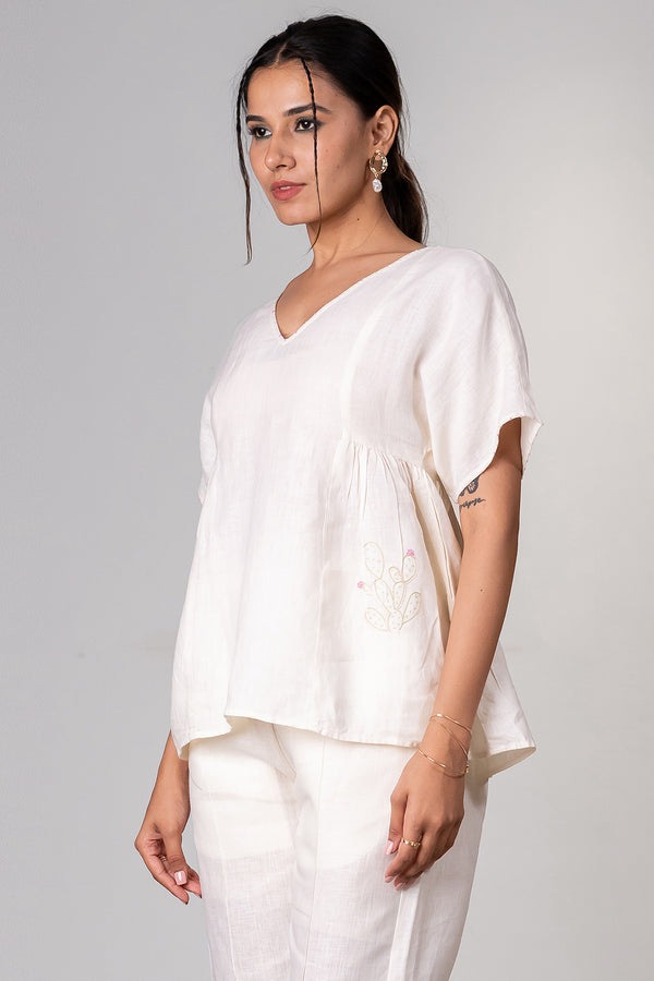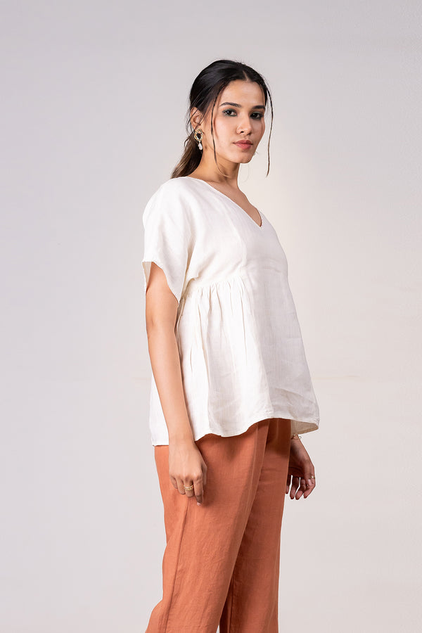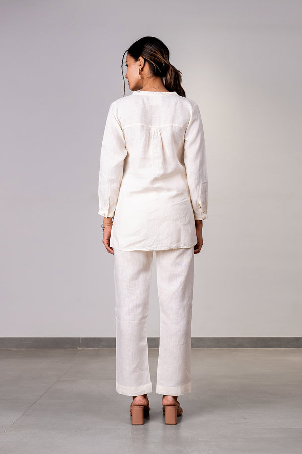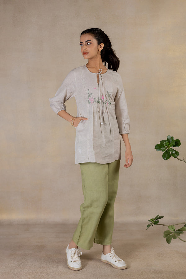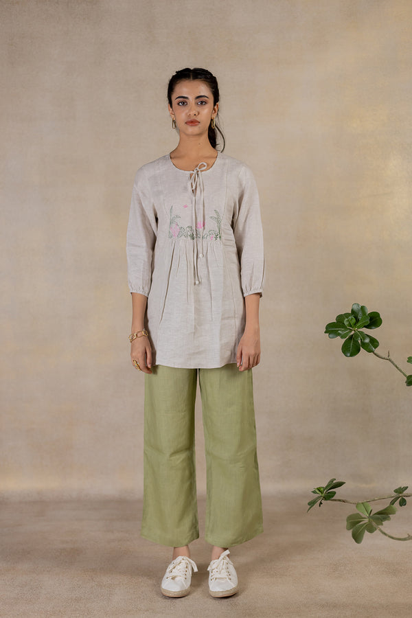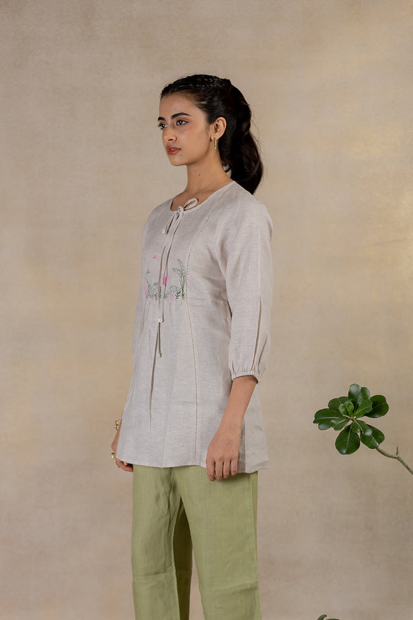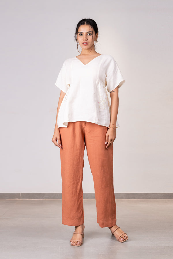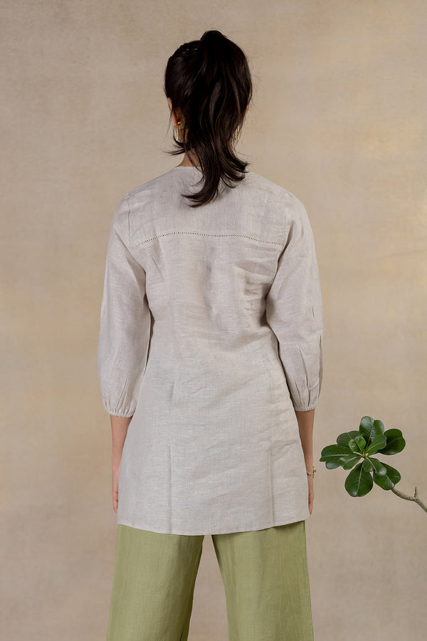 Day 17 - Linen Front Tie-neck Top With Pocket - Ecru