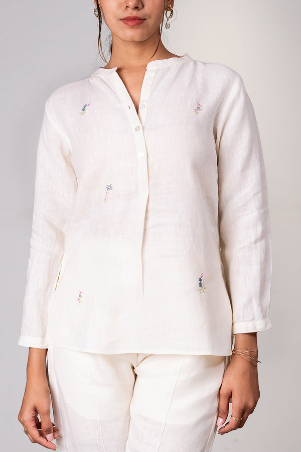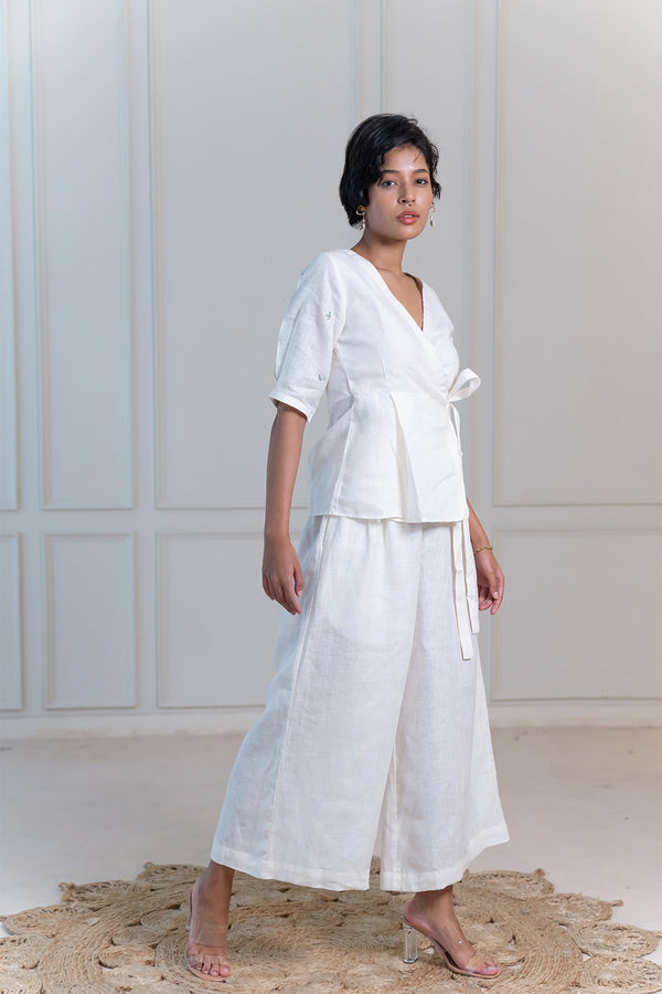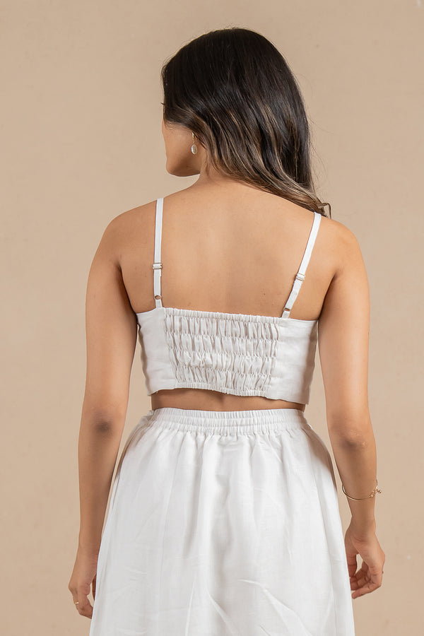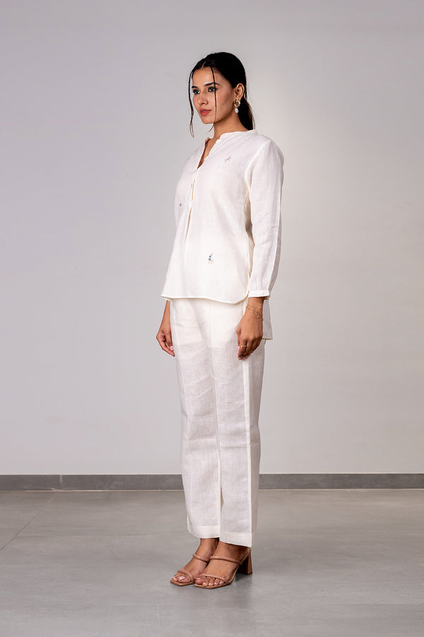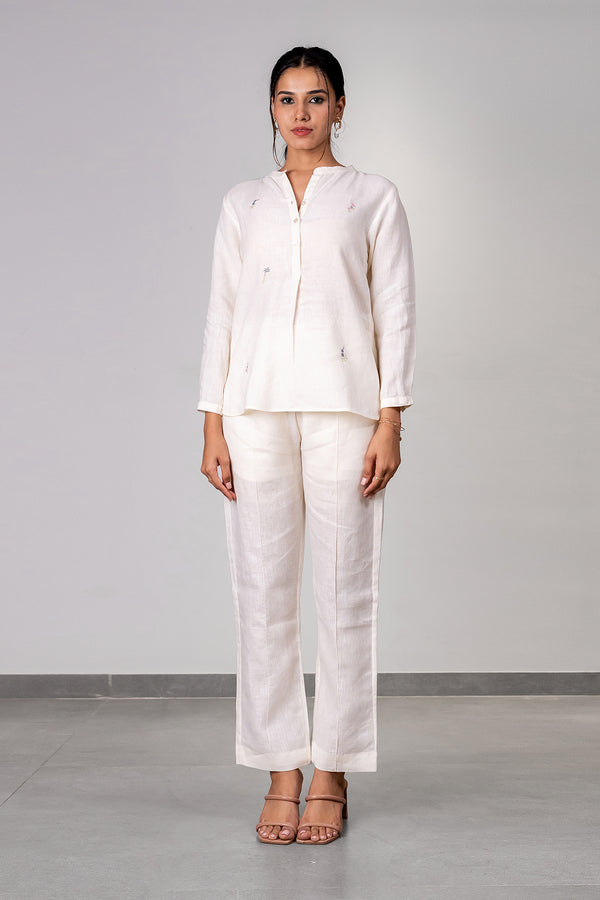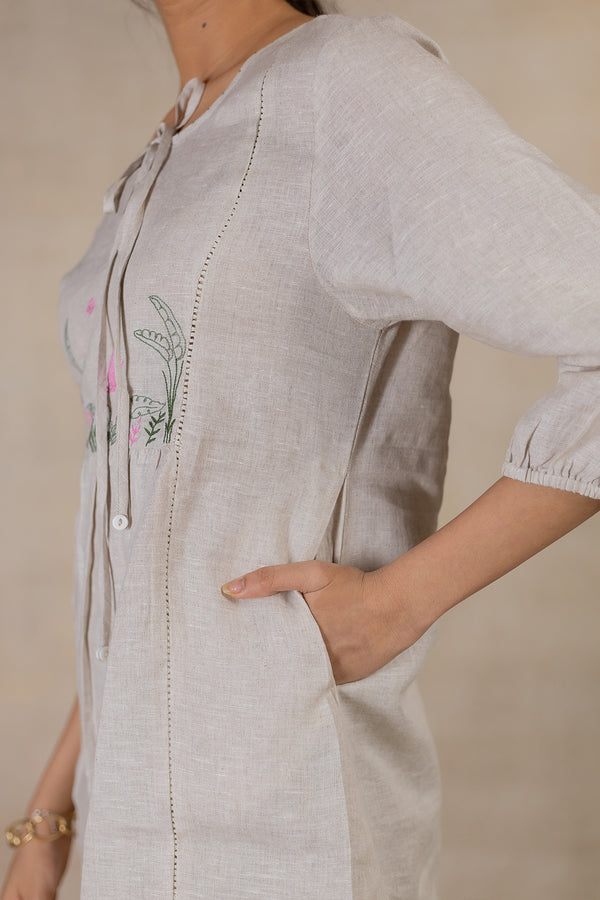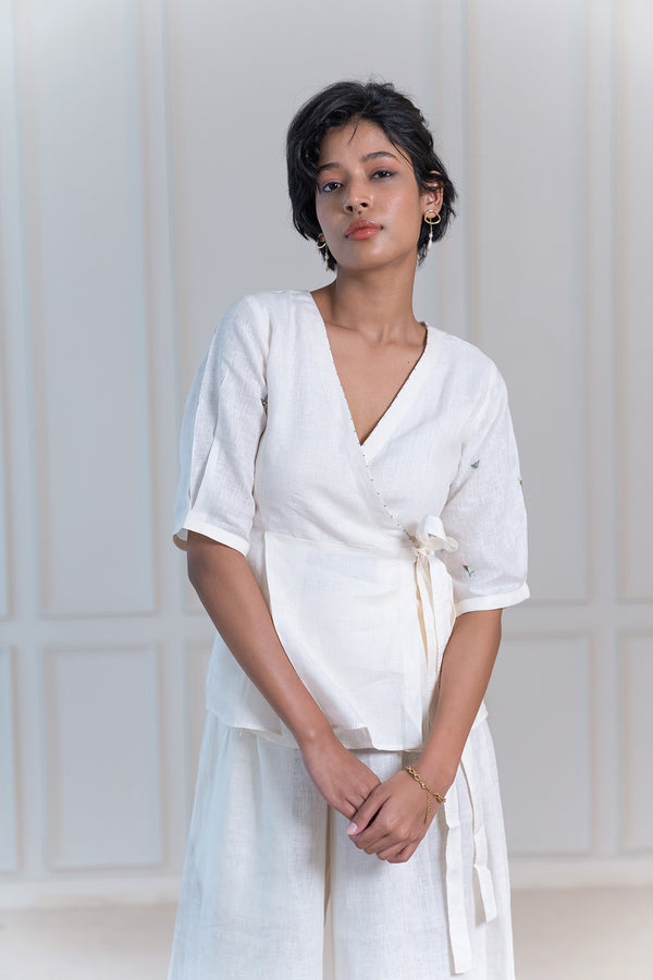 Day 17 - Linen Front Tie-neck Top With Pocket - Ecru