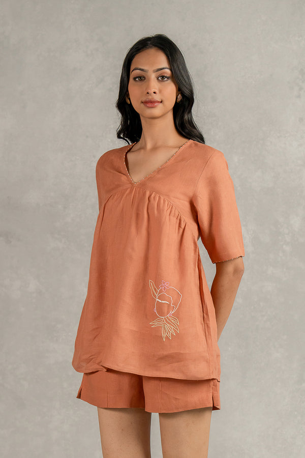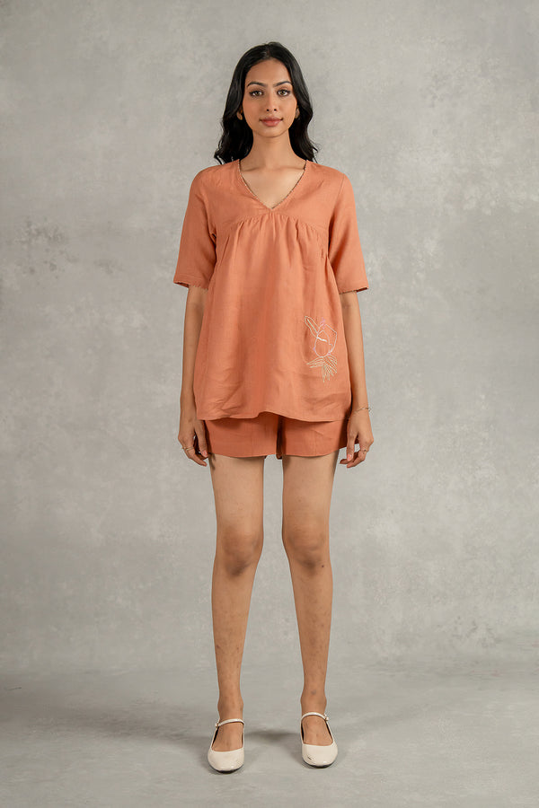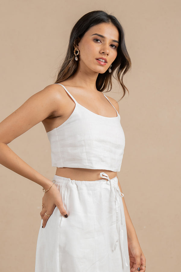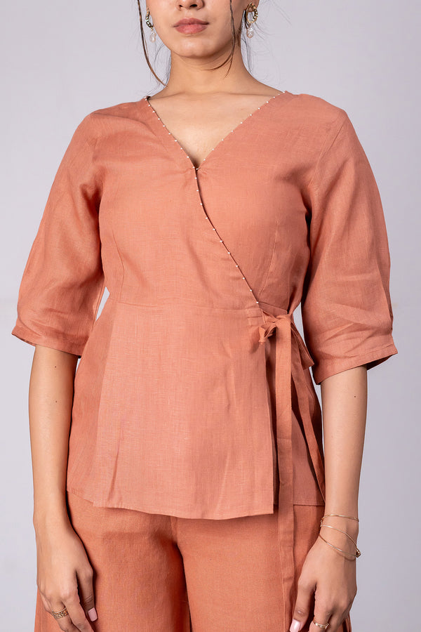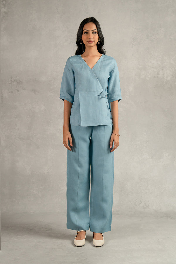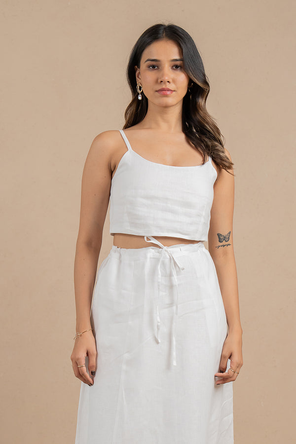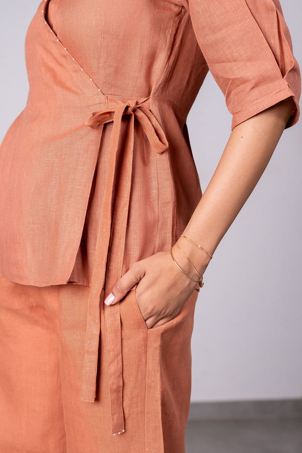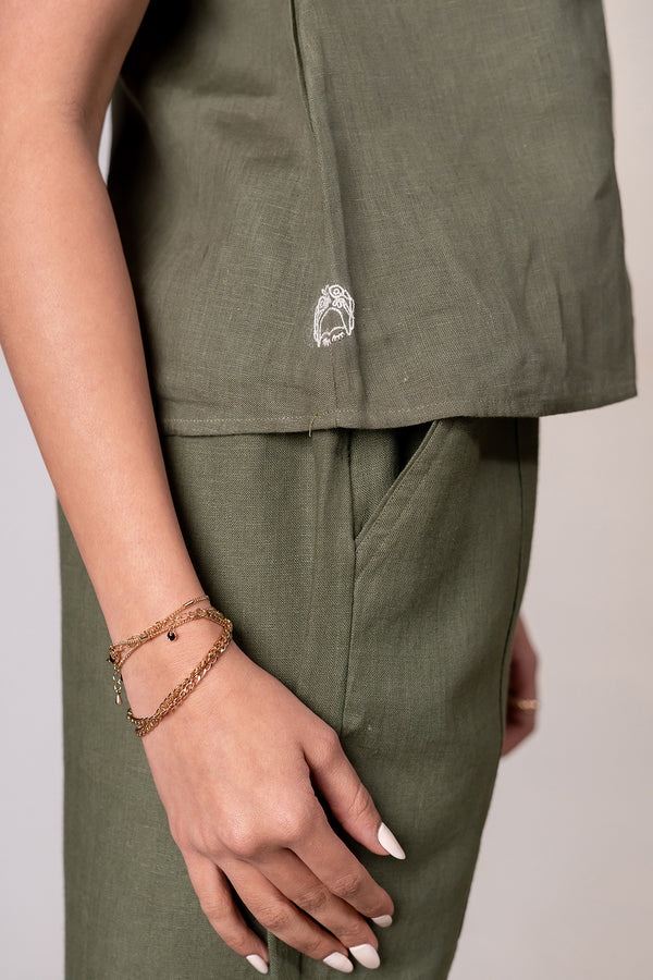Day 17 - Linen Front Tie-neck Top With Pocket - Ecru