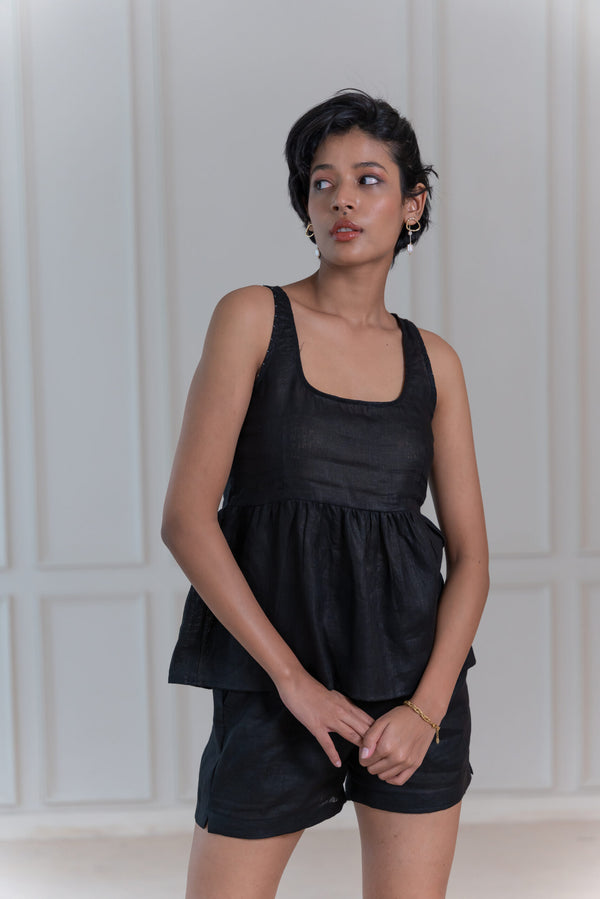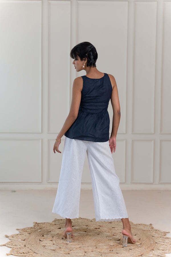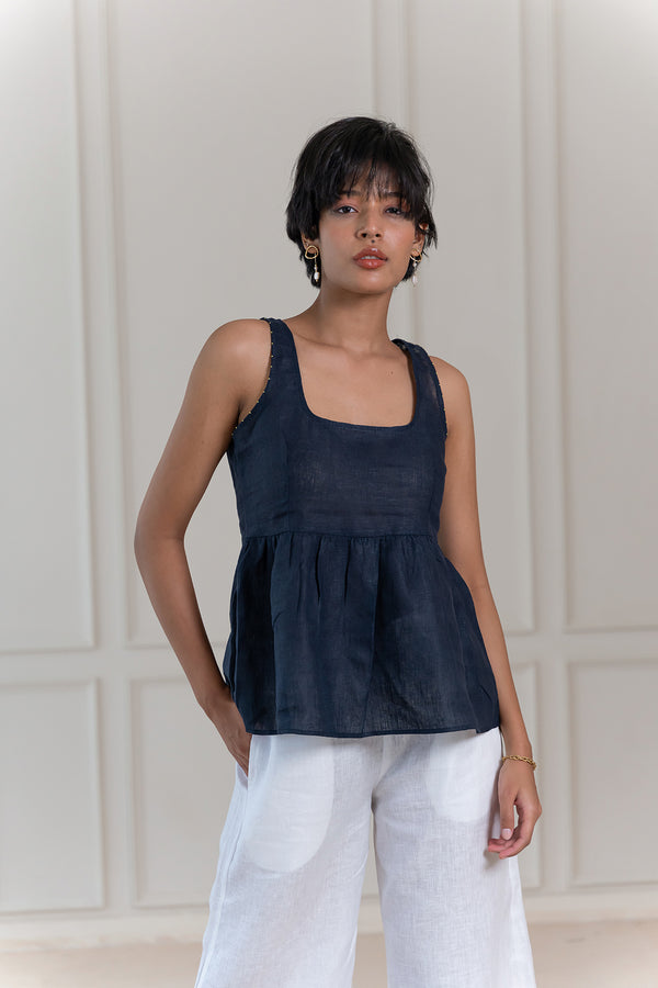 CAROL LINEN SLEEVELESS TOP - Powder Blue