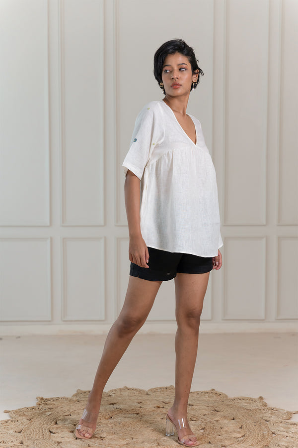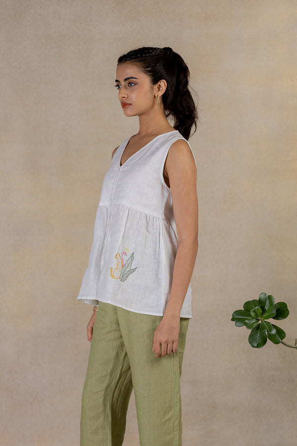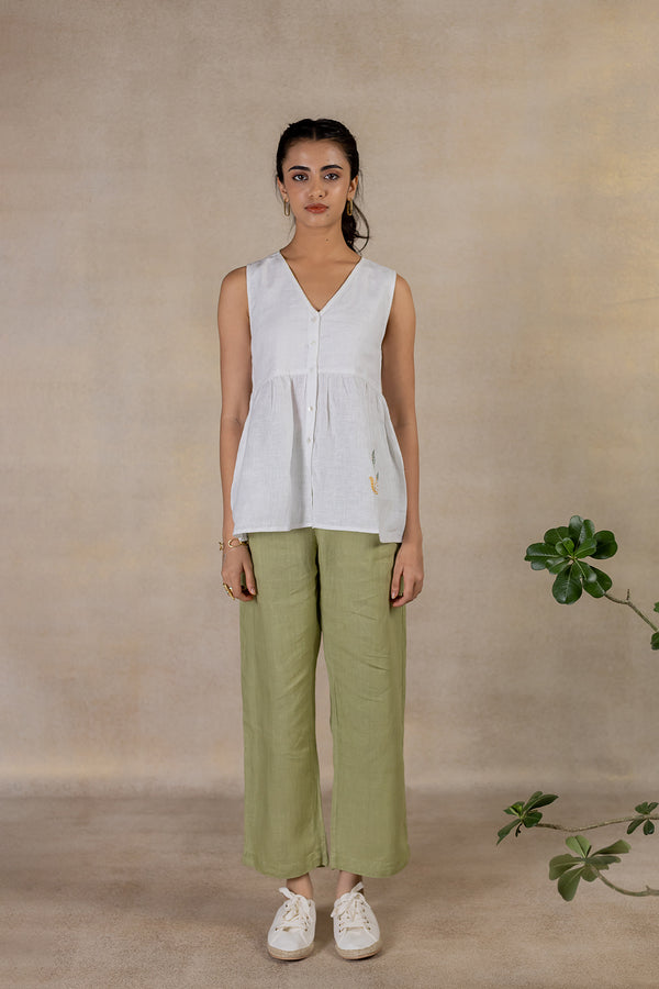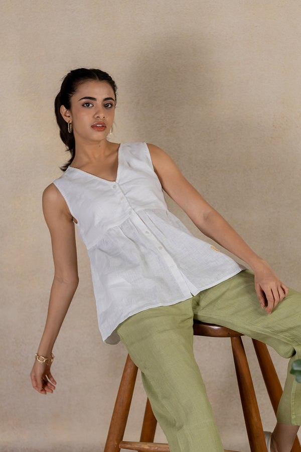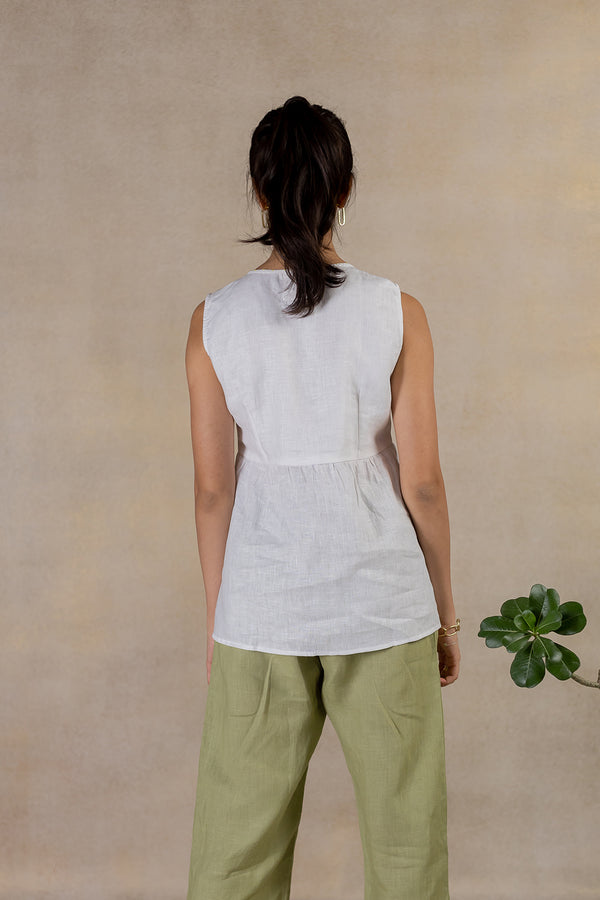 Day 15 - Linen Sleeveless Placket Top With Pocket - White