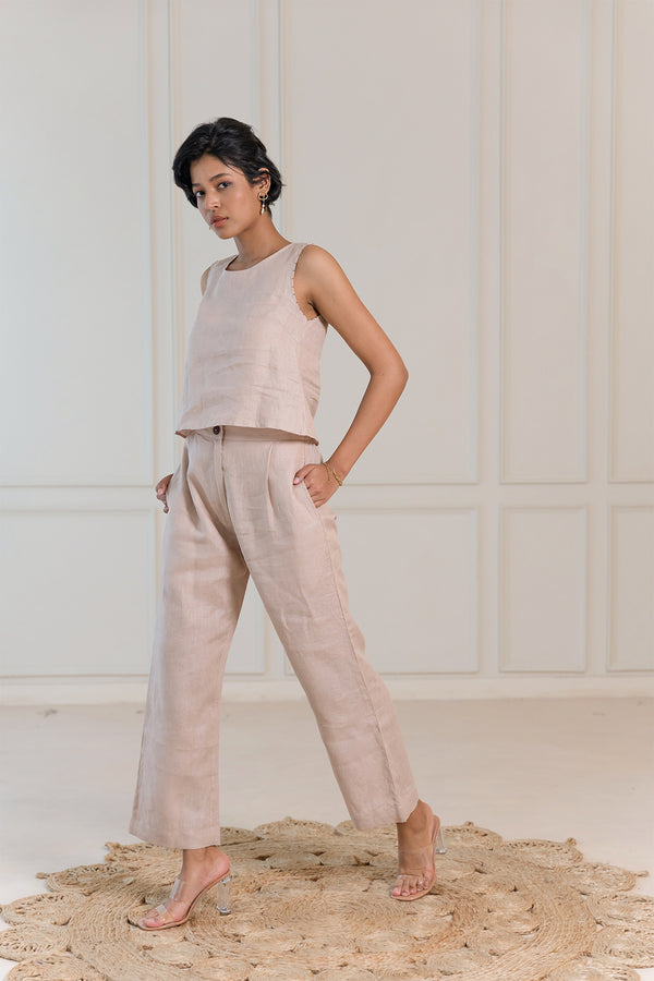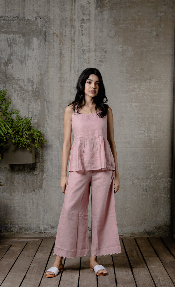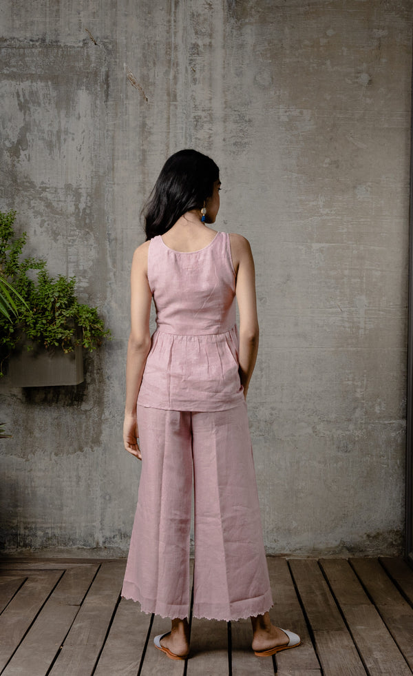 CAROL LINEN SLEEVELESS TOP - Mauve Pink